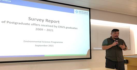 校友精彩的分享后,学子们收获良多。接下来环境科学专业课程主任詹肇泰博士分享了2009-2021届环境科学毕业生深造录取统计情况,为学生们提供了毕业后继续深造的有效参考。最后詹肇泰博士激励大家积极追梦,多充实自己,成就自我!