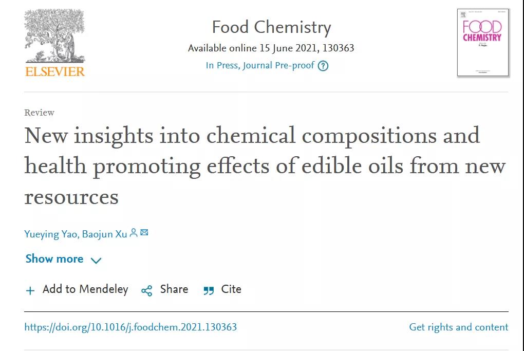 功夫不负有心人,姚玥莹最终准时顺利完成了两篇论文,而那篇“备稿”,正是后来发表的SCI论文《新资源食用油的化学成分和健康促进作用的新见解》。该论文收集了近20年来在Google Scholar、Science Direct等流行数据库中有关鳄梨籽、菠萝蜜籽、木瓜籽、释迦籽、石榴籽、樱桃籽和南瓜籽这几种新资源中提取的油的化学成分及其保健作用的研究,发现这些油含有的有益成分为利用种子油作为预防和管理各种慢性疾病的功能食品提供了未来发展的可能。Food Chemistry在JCR分区为1区,影响因子是6.306,是该领域的top期刊。