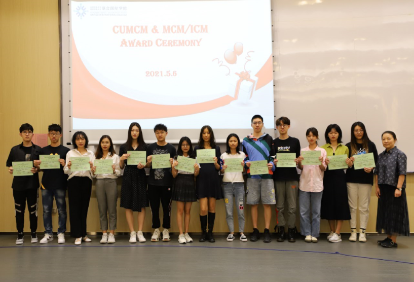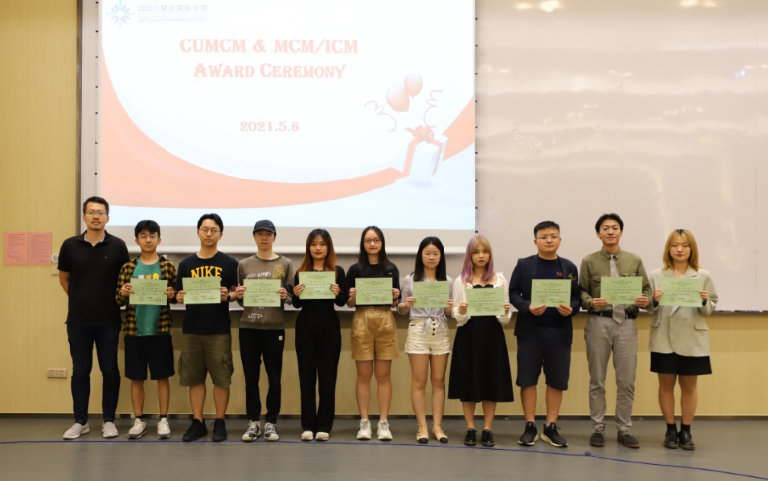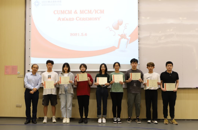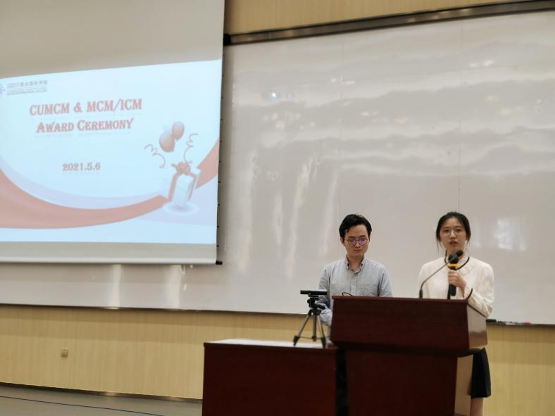 典礼由大二统计学专业卢泓逸主持。数模组负责老师吴京津博士为到场师生介绍了UIC参赛同学在两个比赛中的情况。2020年国赛吸引了来自全国及美国、英国、马来西亚的1470所院校/校区、45680队、13万多人报名参赛。来自数据科学专业的李欣岳、徐铂凯和计算机科学与技术专业的徐子木斩获国家二等奖和广东省一等奖;另有2组获省一等奖,9组获省二等奖,16组获省三等奖,24组获省优胜奖。2021年美赛UIC共19组同学获奖,包括1组特等奖提名,4组一等奖,以及14组二等奖。由2018级统计学专业王睿杰、毕舒彦和杜致信组成的队伍斩获特等奖提名,今年该奖项获奖率为2%,这也是UIC学生首次在美赛中获得该奖项。