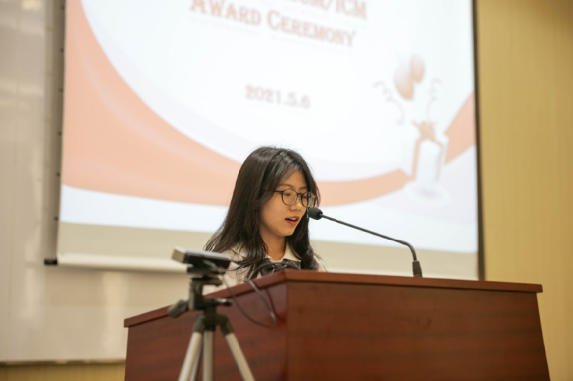 颁奖嘉宾为2020年国赛和2021年美赛的获奖队伍颁发荣誉证书,获奖学生代表还分享了比赛经验及获奖感言。