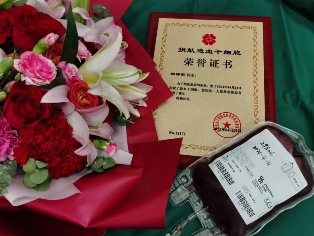 姚梓泓的荣誉证书和采集好的造血干细胞