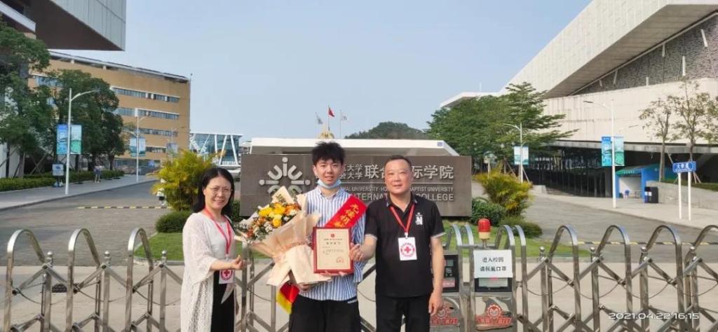 捐献造血干细胞后,珠海市红十字会人员送姚梓泓回校