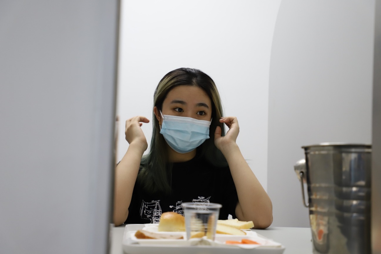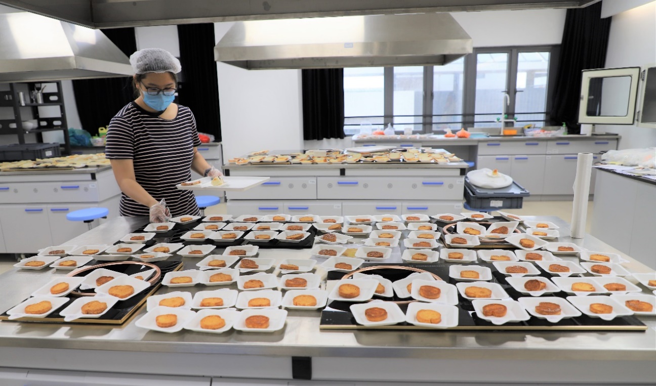 学生志愿者正在T8-515实验室厨房进行产品准备工作