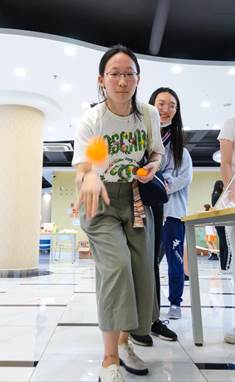 投掷乒乓球游戏的趣味性以及未知食材的“神秘感”,成功吸引不少同学参与。在这轮活动中,乒乓球投入不同纸杯可获得不同食材,参与者可以用得到的食材一起搭配巧克力食用。山楂蘸巧克力你或许听说过,但是甜椒蘸巧克力,西芹蘸巧克力你敢尝试一下吗?“醉翁之意不在酒,在乎山水之间也”,同学们的乐趣不在于获取了什么食物,而是沉浸于游戏的过程。