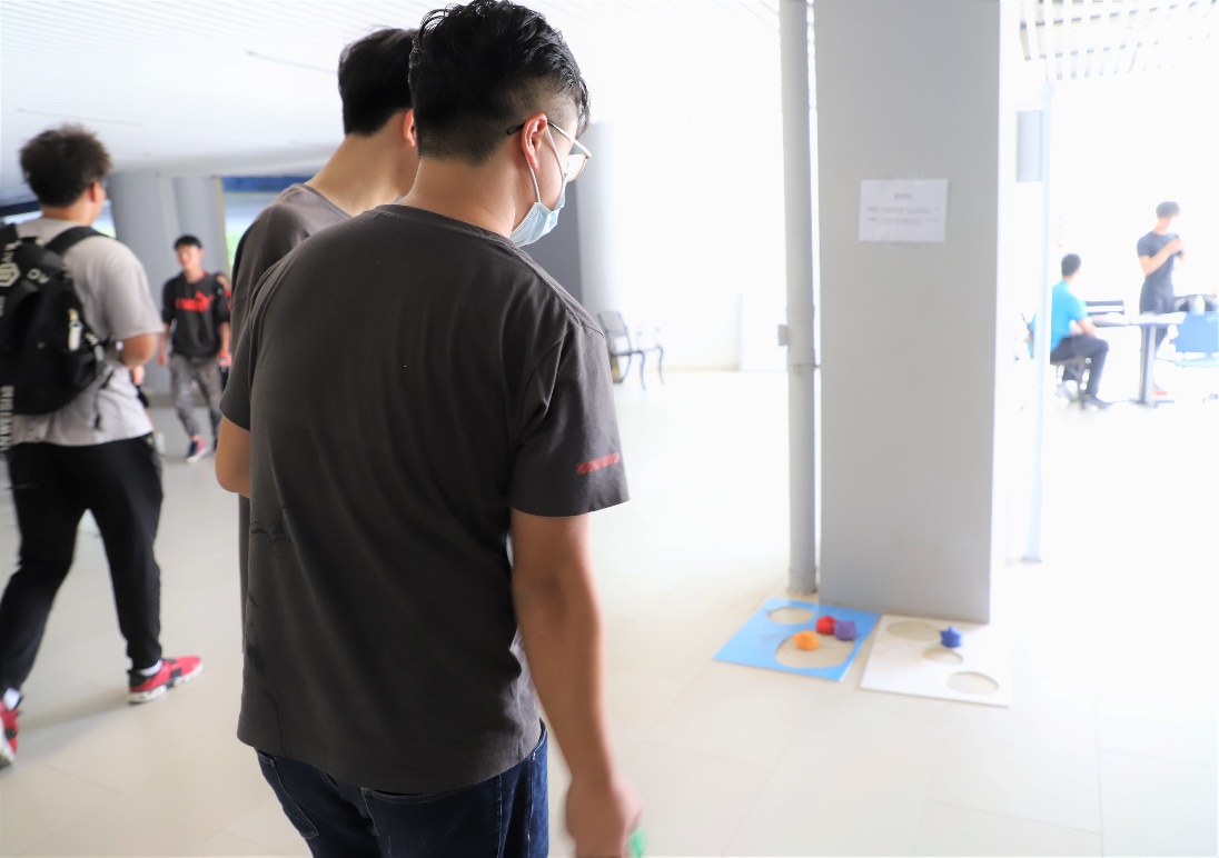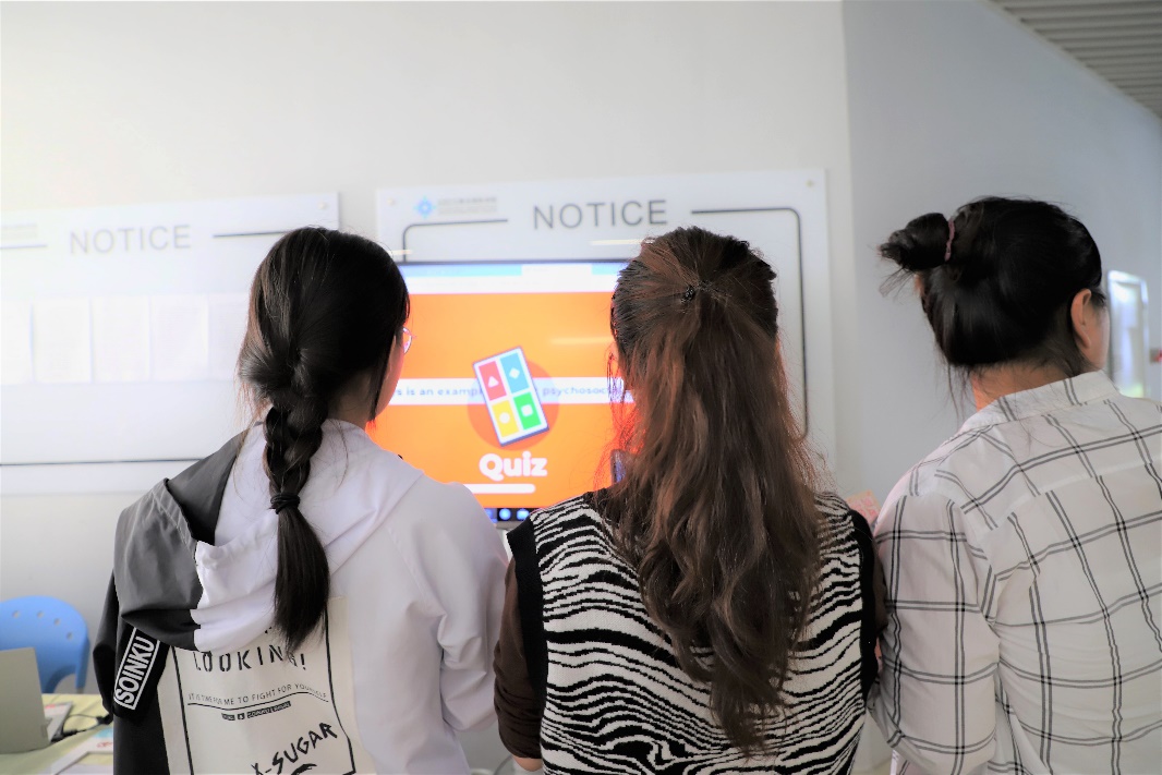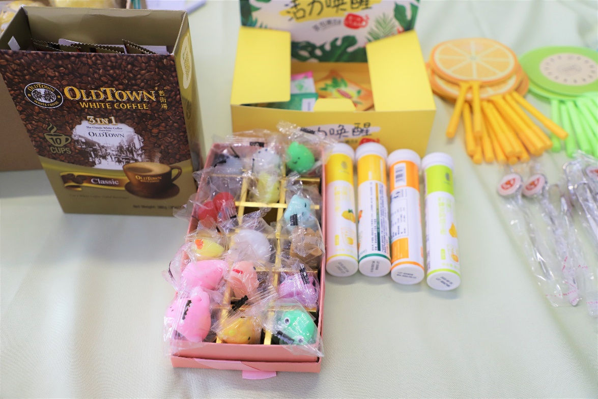 除了海报讲解之外,活动还设置了丢沙包、顺口溜和“不能说”三种趣味小游戏来帮助同学们在紧张的期中考试中缓解压力获取快乐。多人在线的Kahoot it 知识竞答环节吸引了大量同学前来参加,通过问答环节参与者不仅增长了生活健康小知识还有机会获得精美小礼品。活动全程采用印章积分制来进行奖品兑换,奖品丰富多样,包括纪念款书签、小扇子、文件夹、解压小玩具、咖啡、茶包等。
