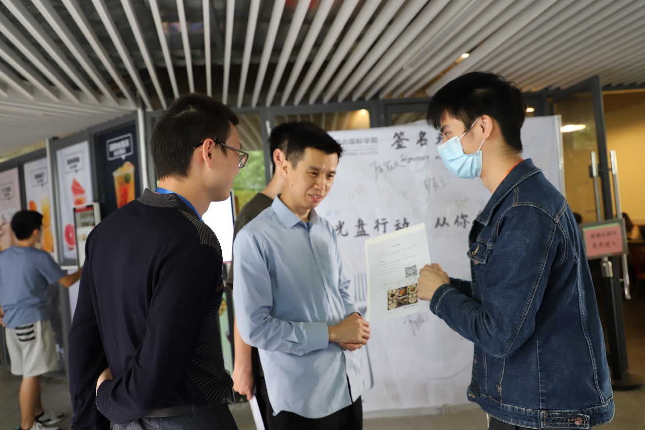 在活动当天,师生党员和学生志愿者们纷纷来到活动现场,组建了3支志愿服务队,分别在学校绿洲、琢乐汇、常胜三个饭堂的入口和饭堂内向师生宣传“光盘行动,杜绝浪费”的理念,养成勤俭节约的良好习惯,并且鼓励大家用实际行动践行 “光盘行动”我先行的号召。参与者展示自己当天的“光盘”照片,并积极参与连续打卡计划,均可获得“光盘行动”专属纪念文件夹或食堂餐券一张。
