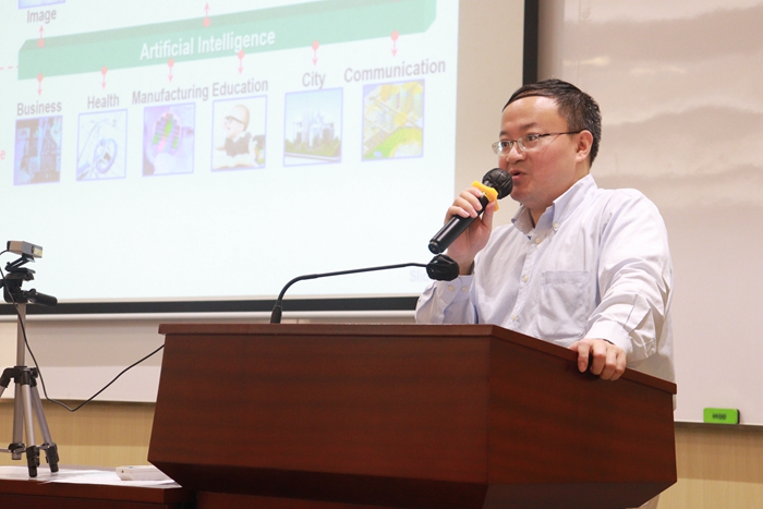 李教授考虑到了现场有多数是本科生,在高深的理论之外,还浅显地介绍了一些人工智能等方面的具体应用。例如在汽车上面安装可以识别行人的模块,进而在夜间行车时,模块自动识别路人并控制车灯避开路人的头部。台下的听众十分感兴趣,一个小时的精彩演讲让在座师生都获益匪浅。