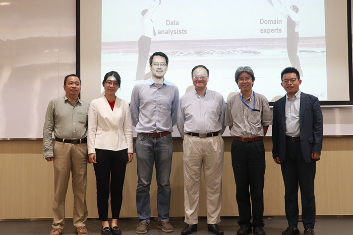 现场嘉宾合影(从左至右:时红建教授、张慧教授、轩辕哲博士、李昕教授、黄华雄教授、朱圣鑫博士)