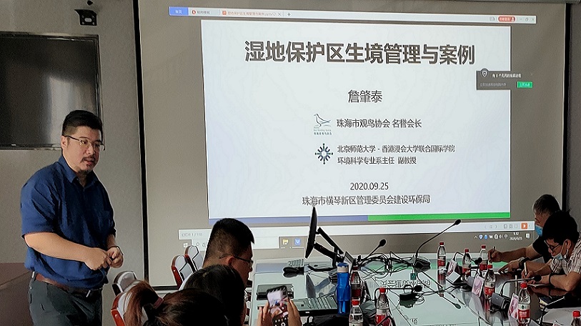 “秉承'两山'理念,共谋绿色发展——港澳地区经验学习” ,2020年9月25日,环境科学专业主任詹肇泰博士接受横琴新区建设环保局邀请,为环保局各位领导、生态环境科、森防办、城市管理科、城市建设科科室负责人及相关业务人员提供有关湿地保育区的规划和管理的专业培训,以借鉴香港在湿地生态保育方面的成熟模式和管理经验,助推横琴绿色可持续发展,进一步推进“创新、协调、绿色、开放、共享”的发展理念。