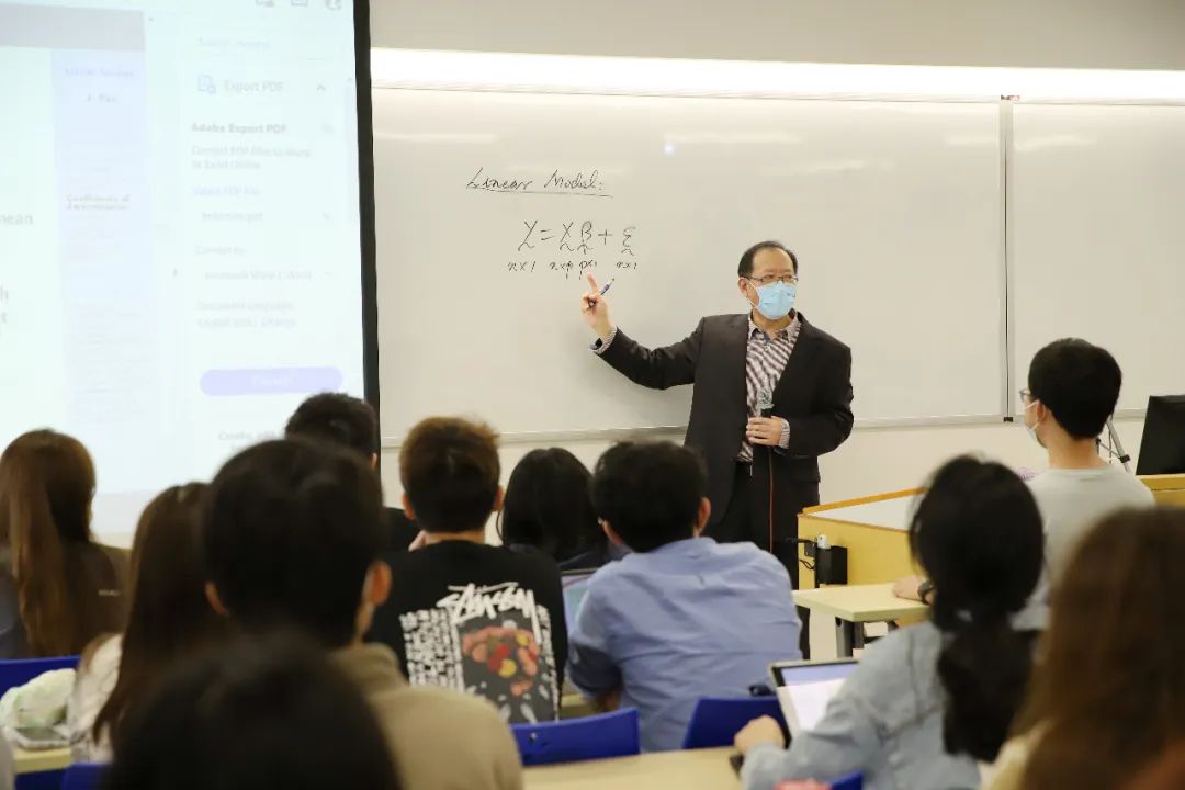 尽管行政工作繁忙,热爱教学的潘教授依然走到教学一线,除了带研究生,本学期他和统计专业副教授马绰欣博士还给本科生合开了“回归分析”课程。“我喜欢教书,喜欢与年轻人打交道。”他笑着说。他希望每个学期能给本科生上一门课,并且指导本科生的毕业论文。他还和学部老师组织了Staff-Student Sharing Corner on Overseas Experiences Series,师生面对面交流留学经验、人生规划等。