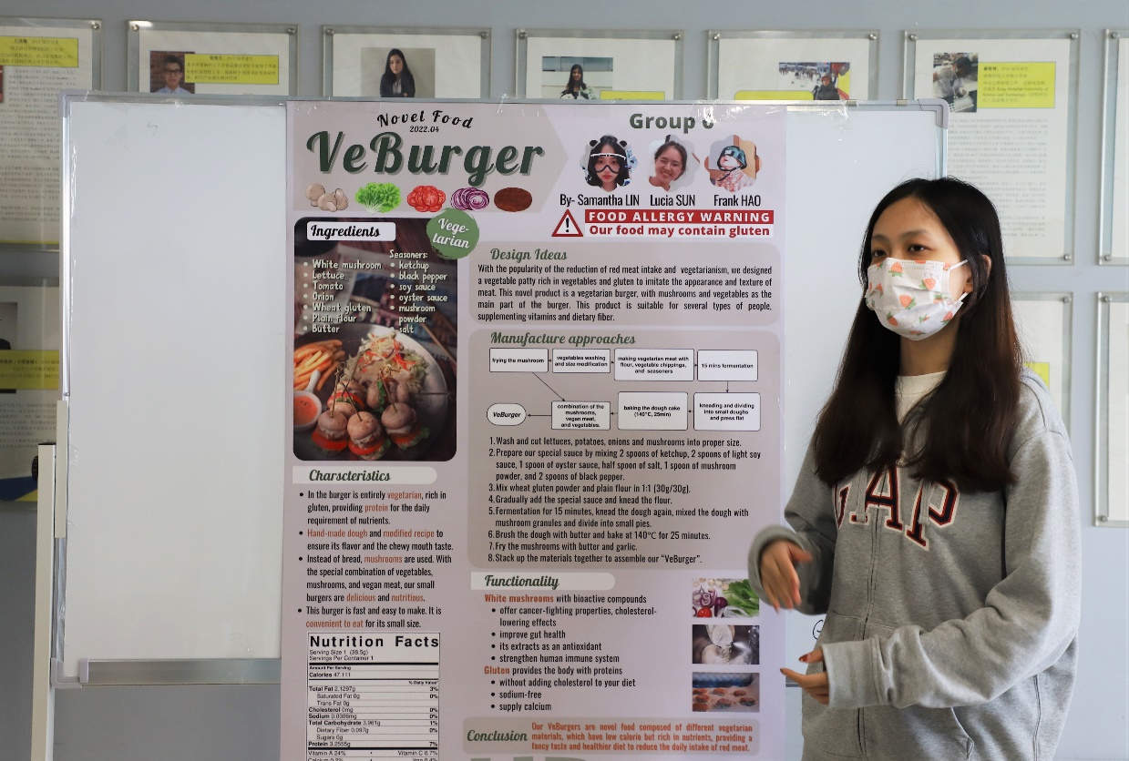 伴随活动接近尾声,投票结果已经逐渐浮出了水面。经过老师们的投票结果,这组由陈宁、方智宁和董嘉伟同学制作的产品“椰斯抹拉”,成功俘获了多数评委的味蕾和芳心获得最受欢迎食品奖。由陈浚哲、刘思岩和刘易文同学制作的产品“一杯暖阳”被选为最具商业价值奖。在产品海报展示中,郝广帅、林晓君和孙雨心同学制作的“我行我素植蛋白蔬萃菌菇堡”以健康美味的素食概念和出色的讲解表现赢得全场最高分,斩获最佳海报奖。