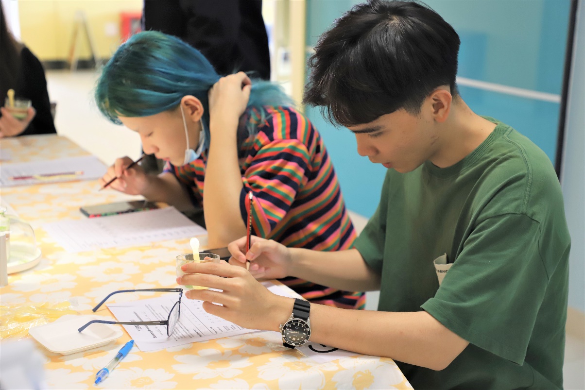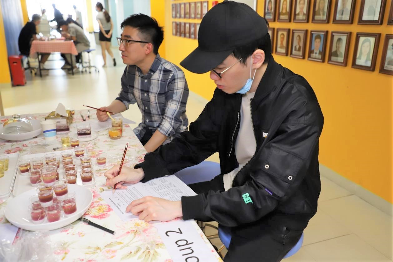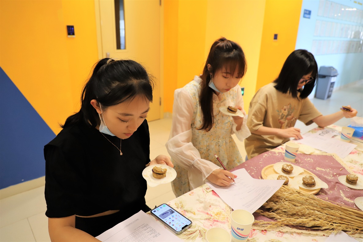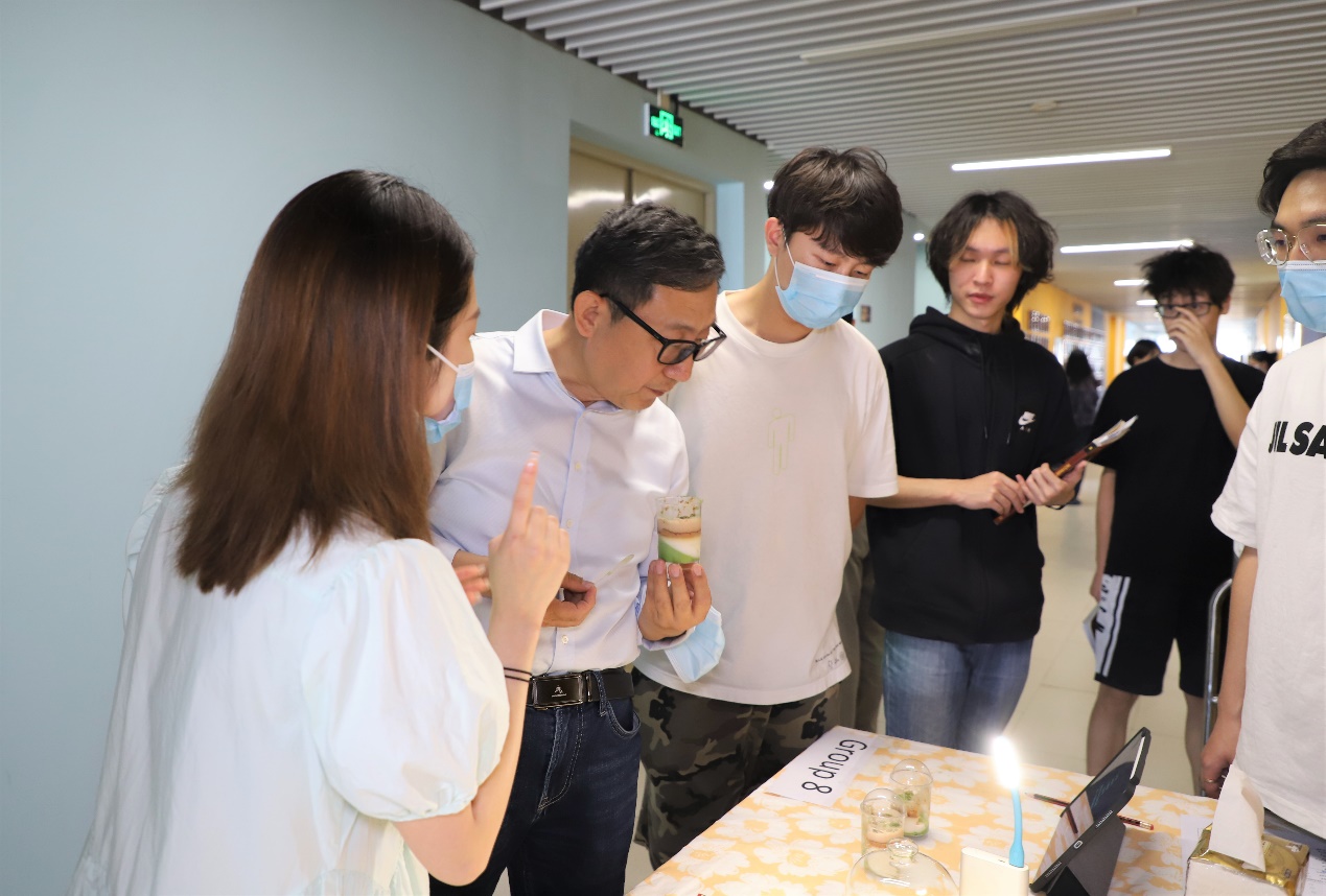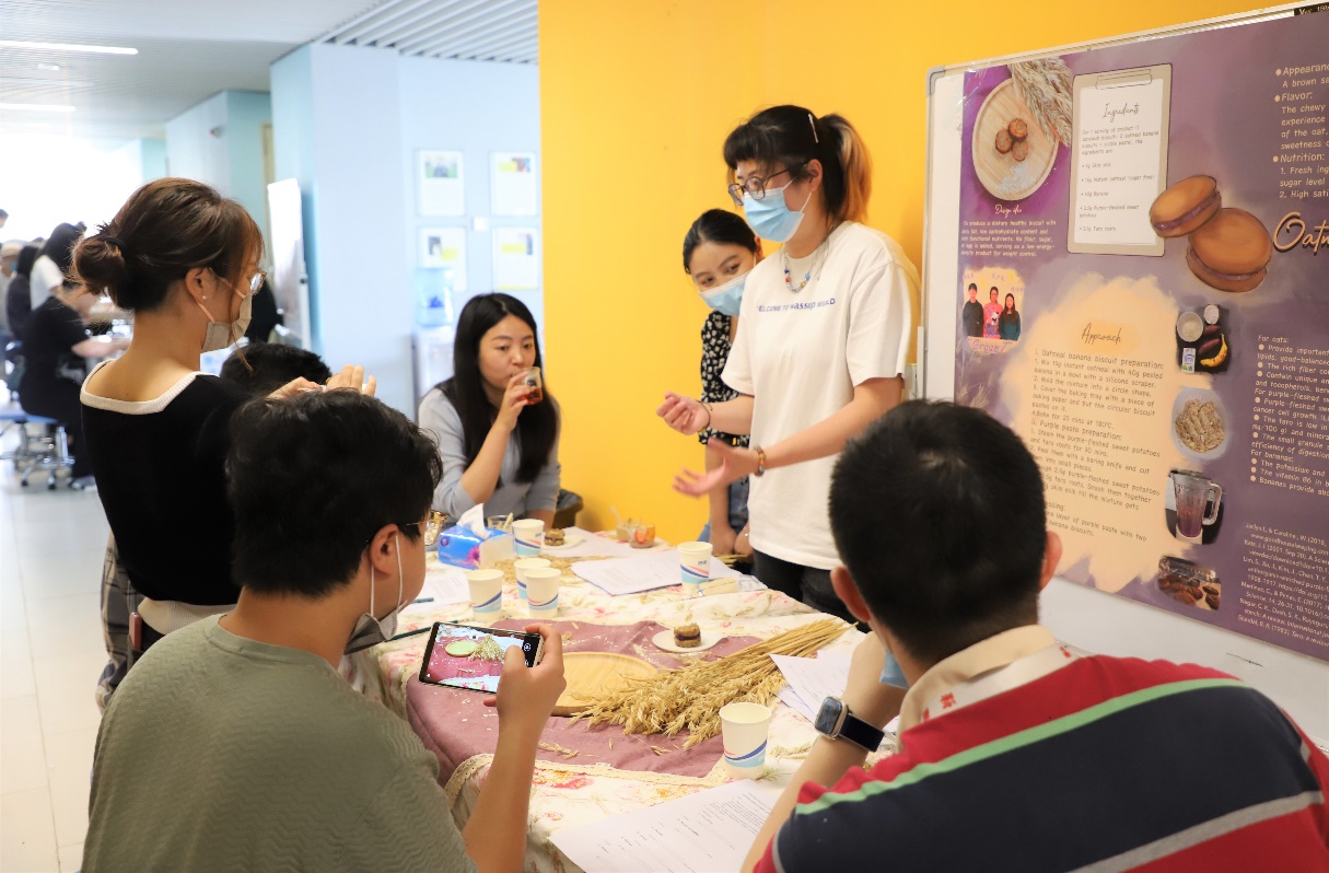 “请带好口罩,测量体温正常并登记后,排队入场,全程戴好口罩。”在创意食品嘉年华活动的入口,工作人员耐心引导参加此次活动的人员有序进场。为配合疫情防控,此次活动对入场人员进行了限流,仅邀请了理工科技学部院长潘建新教授和FST部分师生参加。限流没有减退每一位“研发者”的热情,从产品的初创、到一次次配料比例的调整、口感的提升、产品宣传介绍,直到活动当天每一份作品几近完美的呈现,都体现了他们的尽心尽力和每一份期待。