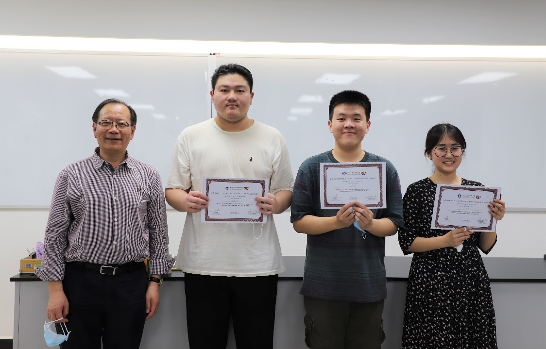 徐宝军教授(左一)为最佳海报奖“我行我素植蛋白蔬萃菌菇堡”颁奖