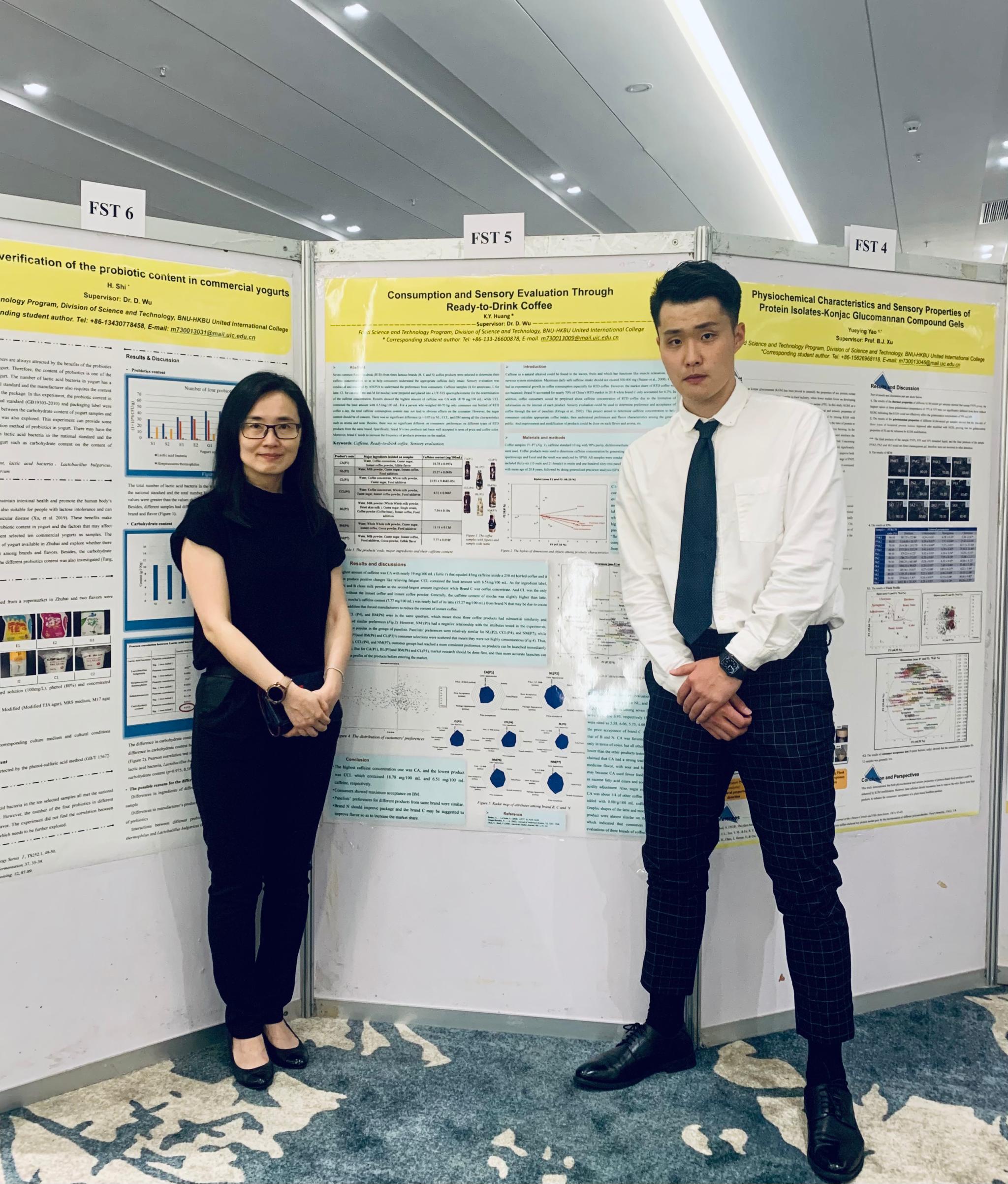 在学部海报展上,黄开元和论文导师胡美怡博士(左)