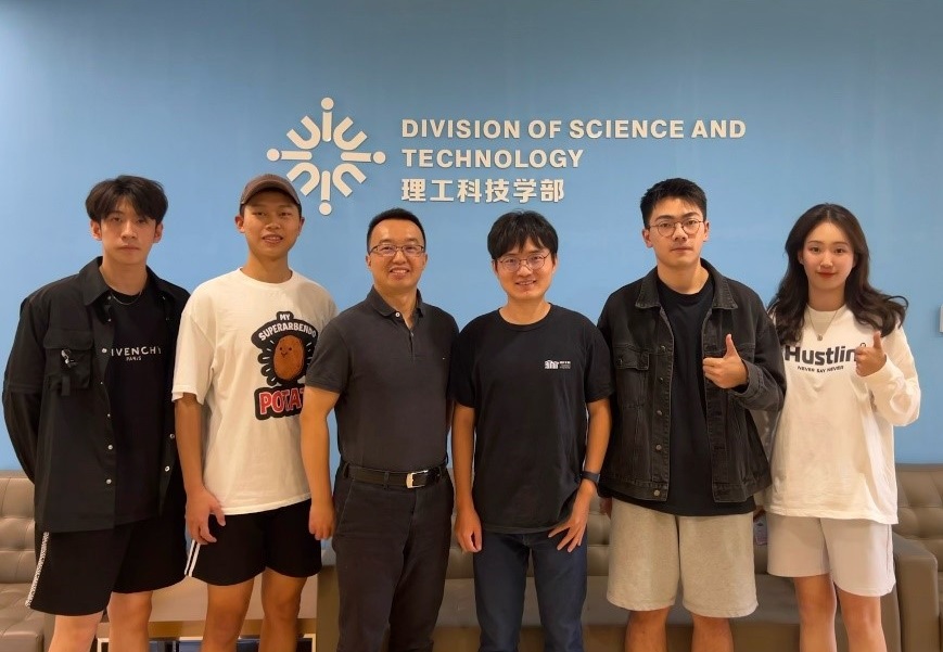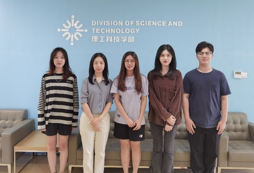 (左起)项目组成员黄俊棋、刘帅军,导师邓宇辉、吴京津,项目组成员杜劲秋、郑雅心