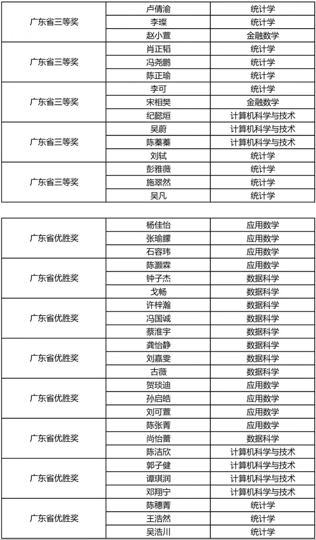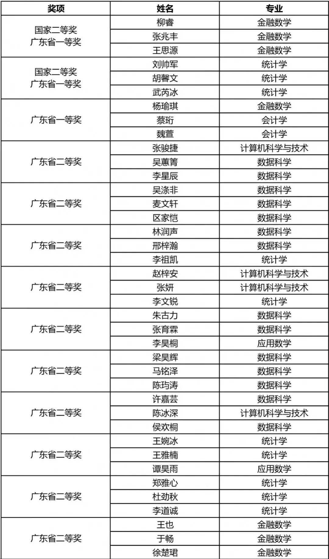 获奖名单