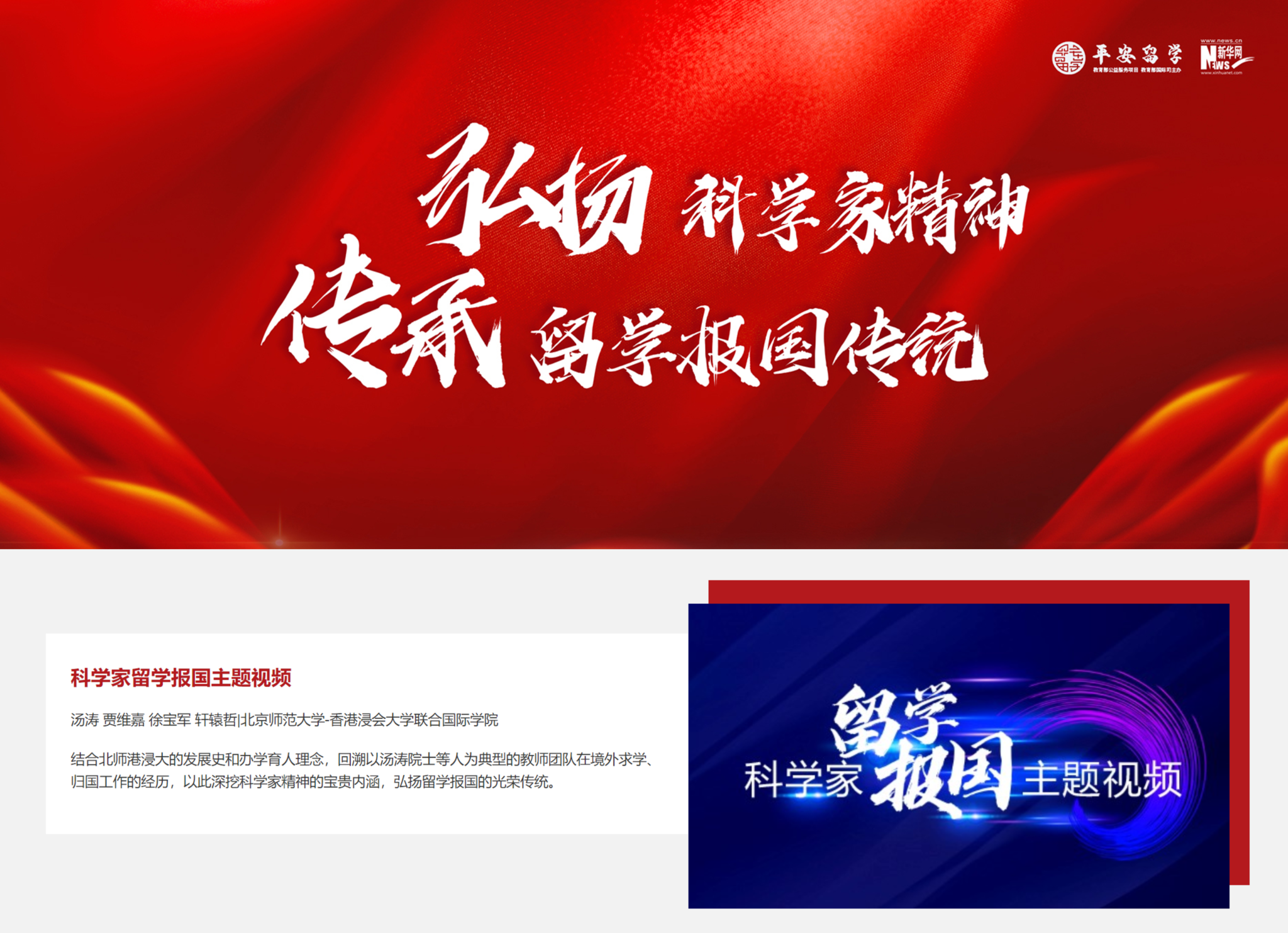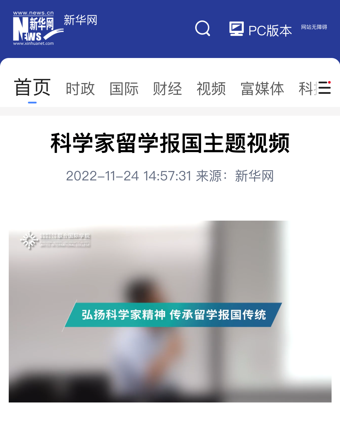近日,在教育部国际司指导下,教育部留学服务中心与新华网联合开展以“弘扬科学家精神,传承留学报国传统”为主题的视频作品展播,北师港浸大(UIC)老师的故事被收入其中。视频结合北师港浸大的发展史和办学育人理念,回溯了中国科学院院士、欧洲科学院院士、校长汤涛教授,副校长(研究和拓展)贾维嘉教授,理工科技学院生命科学系主任徐宝军教授和理工科技学院助理院长(科研)轩辕哲副教授为典型的教师团队的留学报国故事。