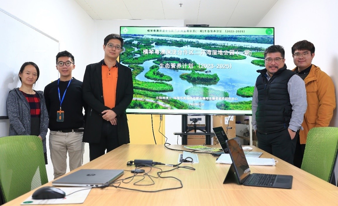 在较早的时间,生命科学系副系主任、广东省数据科学与技术交叉应用重点实验室成员、环境科学专业副教授詹肇泰博士于2022年带领其2名博士研究生王修志和梁凌紫制订了《横琴粤澳深度合作区二井湾湿地公园(一期)生态管养计划(2023-2025)》,提出的生态管养方案、监测系统规划、管养评价系统受到横琴粤澳深度合作区城市规划和建设局的肯定,也为本项目的合作奠定了良好的基础。