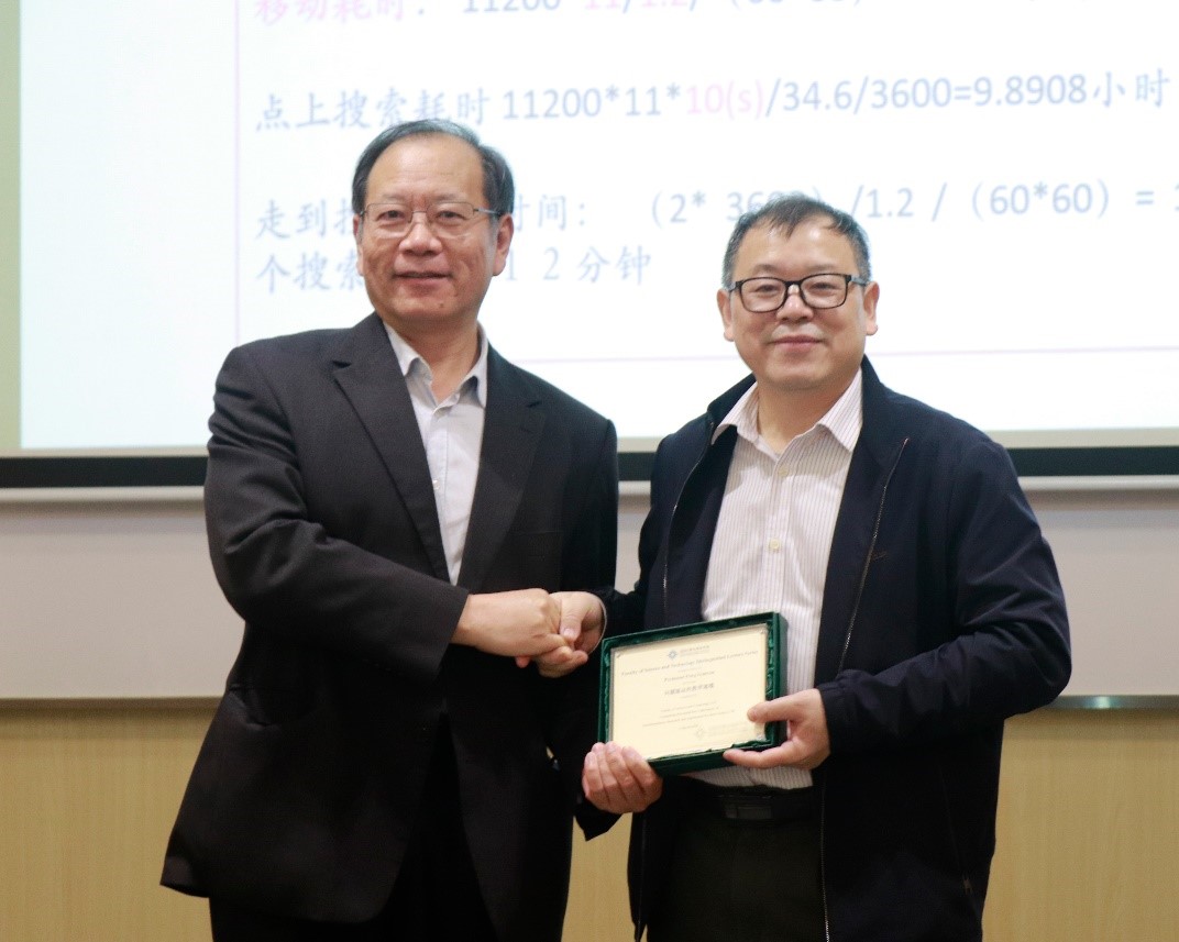 理工科技学院院长潘建新教授向冯教授赠送纪念品