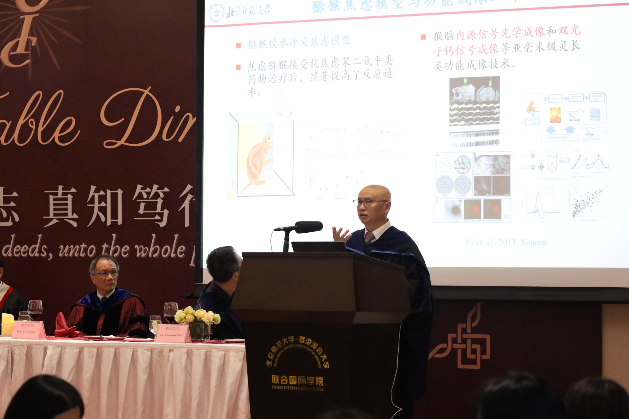 2023年5月10日,北京师范大学心理学部教授、北师港浸大(UIC)理工科技学院生命科学系杰出客座教授罗跃嘉应邀作为学院高桌晚宴嘉宾,为师生带来“焦虑的脑科学研究与临床转化”的主题演讲。