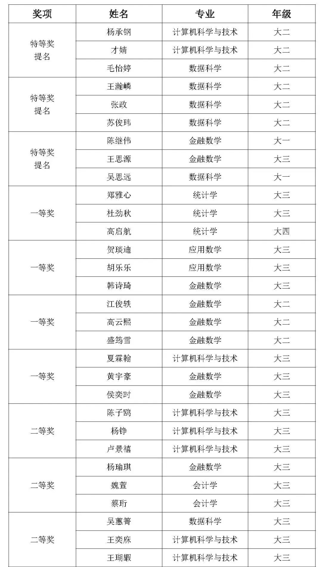 数据科学专业毛怡婷的队伍获美赛特等奖提名。今年是他们第二次参加美赛,去年他们获美赛二等奖。她表示,如果擅长和熟悉的方法不能很好地解决问题,要及时调整方法。另外,好的创意会为比赛加分,灵活运用工具也有助于提高工作效率。建模竞赛的题目没有标准答案,更重要的是努力去呈现一篇结构合理、逻辑严谨、结果完整的论文。