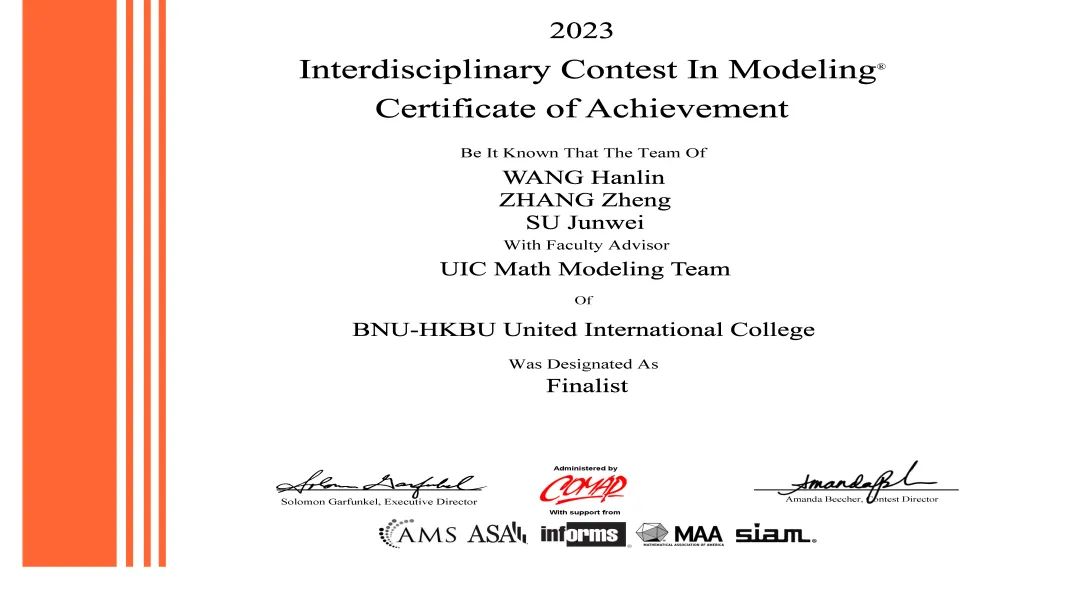 近日,2023年美国大学生数学建模竞赛结果揭晓。北师港浸大(UIC)学子再创佳绩,共有20组同学获奖,包括3组特等奖提名、4组一等奖和13组二等奖,特等奖提名数量创历史新高。