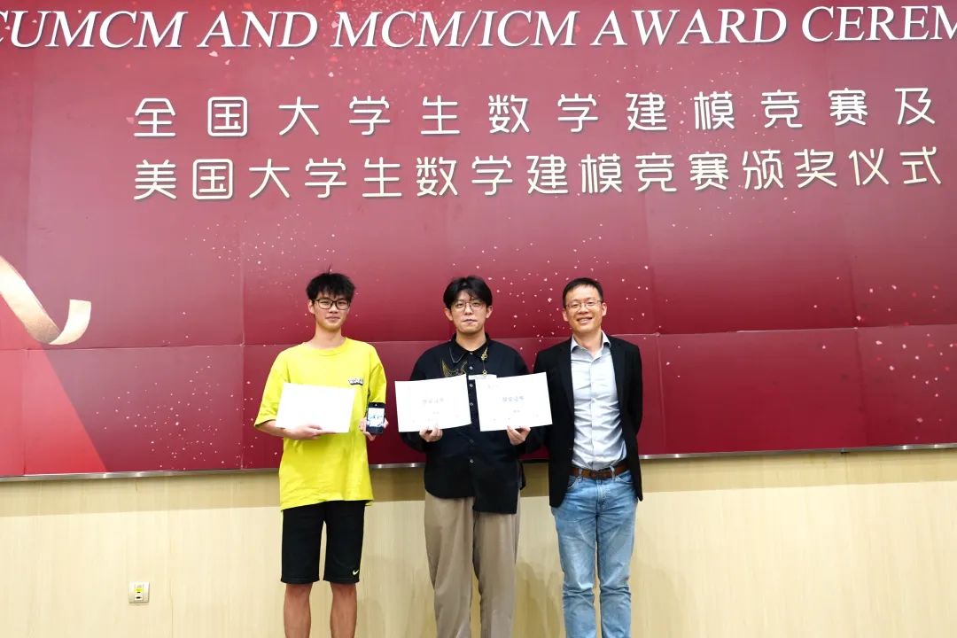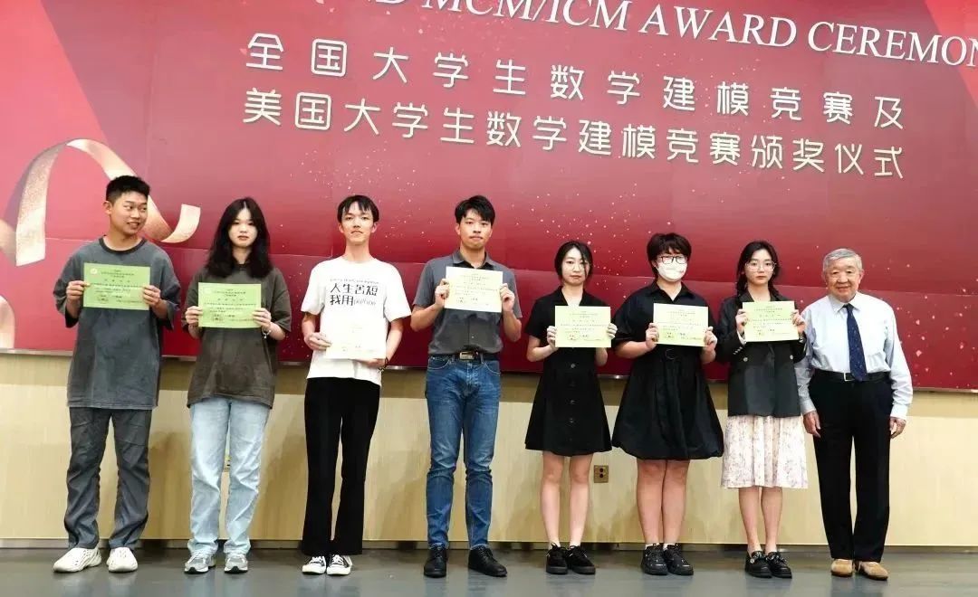 侯远坦博士(右一)为美赛二等奖获奖同学颁奖