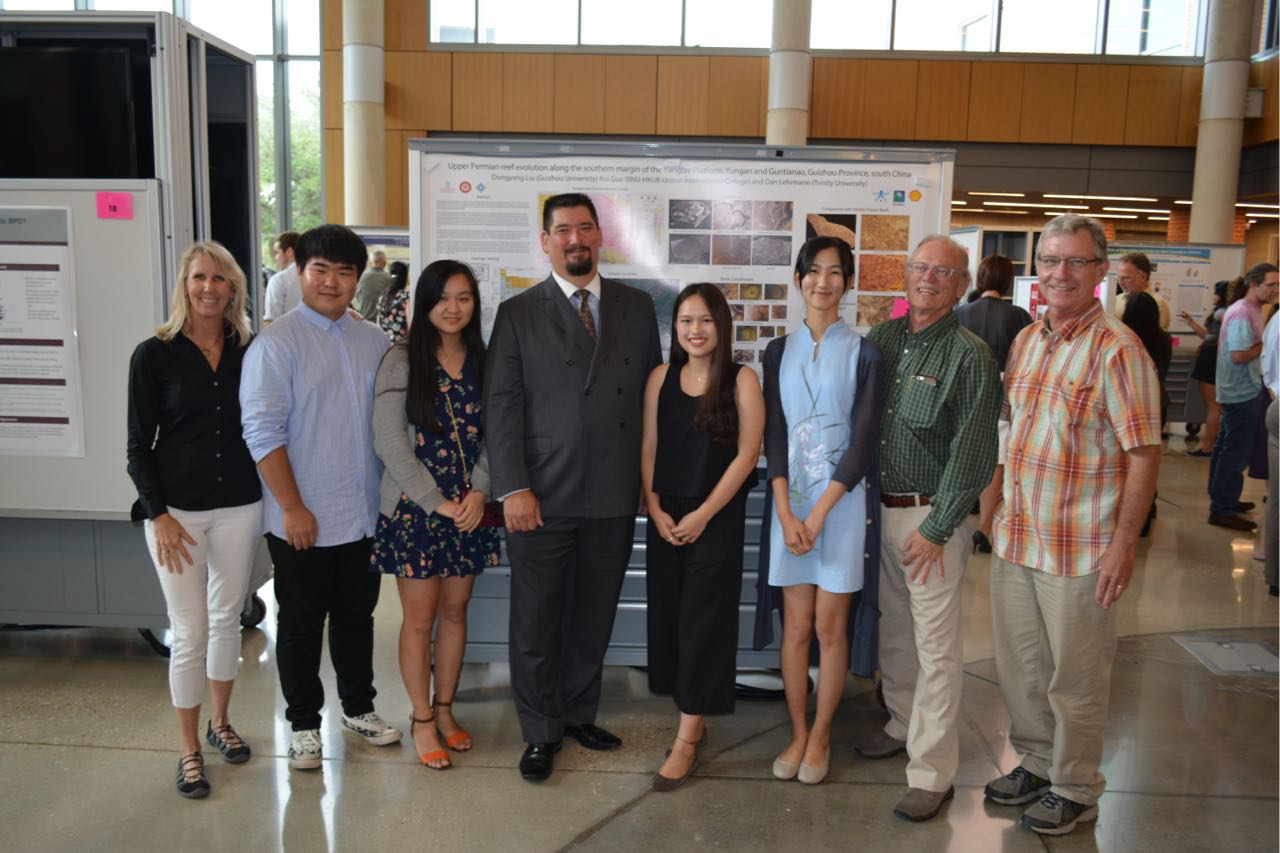 及环科学妹王小毛(右三,已被录取,即将读博)在美国三一大学参加学术海报展