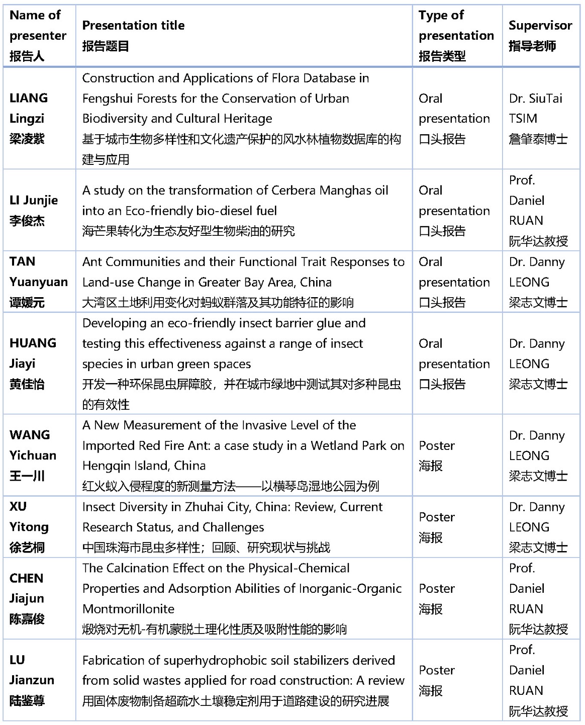 UIC环科参会师生报告内容