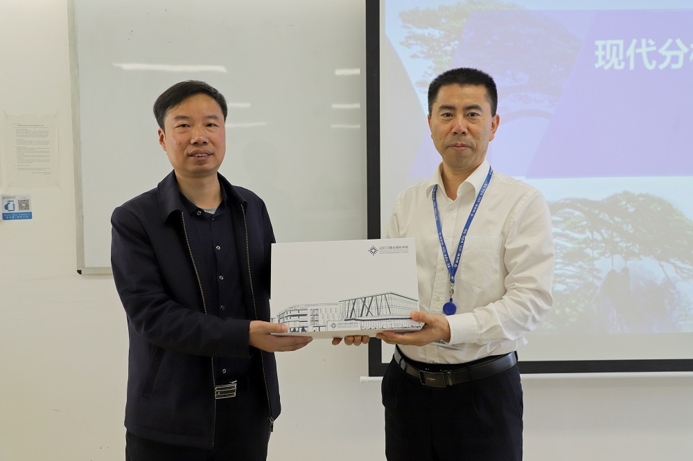 活动最后,生命科学系系主任徐宝军教授向邵栋梁先生赠送UIC纪念品并邀请他与师生进行了合照留念。