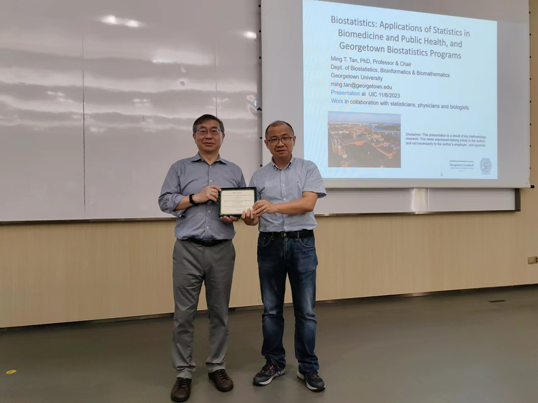 11月8日,乔治城大学医学部和乔治城隆巴迪国家综合癌症医疗研究中心生物统计生物信息和生物数学系终身教授、系主任谭铭教授,应北师港浸大(UIC)理工科技学院、广东省数据科学与技术交叉应用重点实验室、统计与计算智能研究所的邀请,为我校师生分享了生物统计学在生物医学研究事业中的作用以及在医学上的应用,并介绍了与我校合作的乔治城大学生物统计研究生项目。