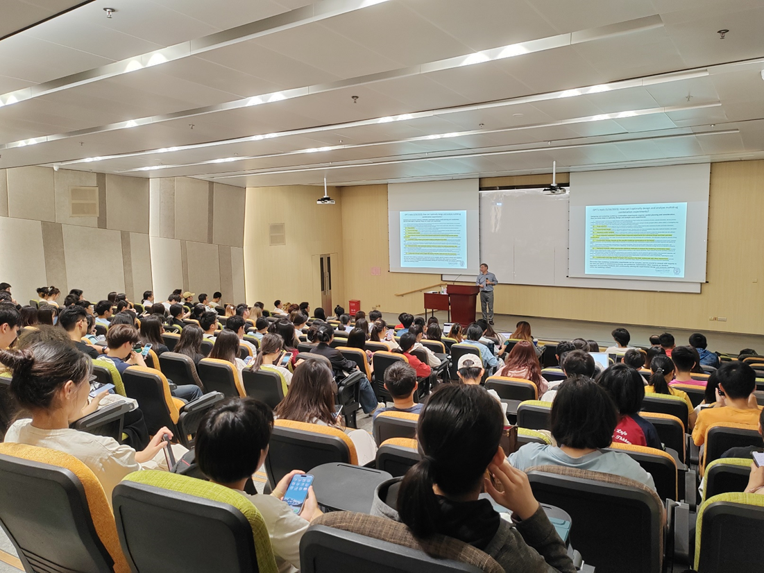 随后,谭铭教授介绍了乔治城大学生物统计项目及近年来与UIC的合作情况。我校理工科技学院于2013年与乔治城大学医学部签署合作备忘录,为UIC学生申请攻读该校生物统计等医学部硕士项目提供优惠条件。通过该项目毕业的校友目前大多在国内外知名药企就业,或继续攻读博士学位。现场学生也针对该项目入学条件,就业及留学生活等方面积极提问,谭铭教授均给予耐心解答。