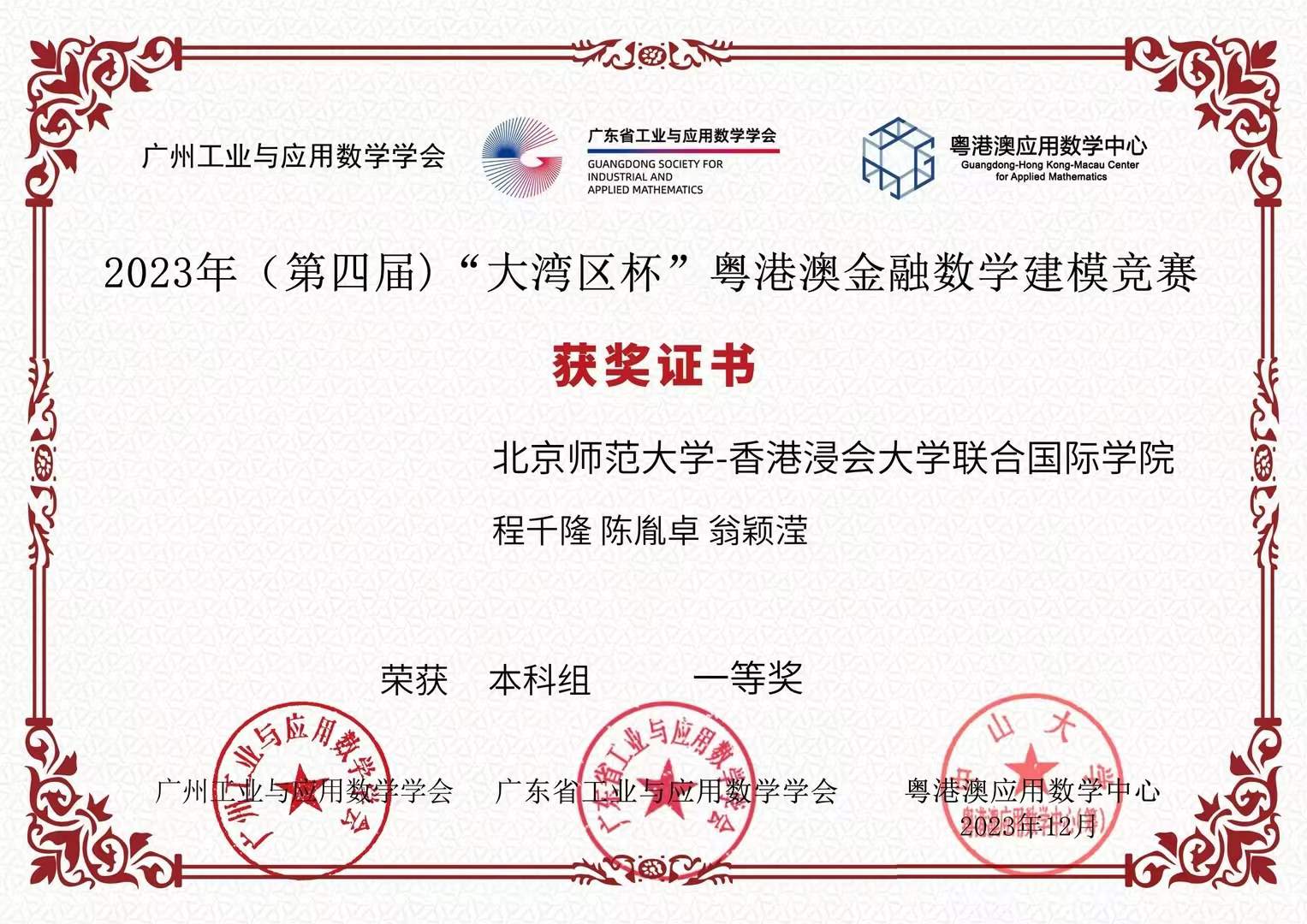 近日,第四届“大湾区杯”粤港澳金融数学建模竞赛落下帷幕。UIC学生表现出色,来自理工科技学院、文化与创意学院以及工商管理学院十个专业组成的九支队伍获奖,包括一等奖1项,二等奖1项,三等奖2项,优胜奖5项。其中2021级计算机科学与技术专业程千隆、陈胤卓,2022级统计学专业翁颖滢的队伍荣获一等奖。