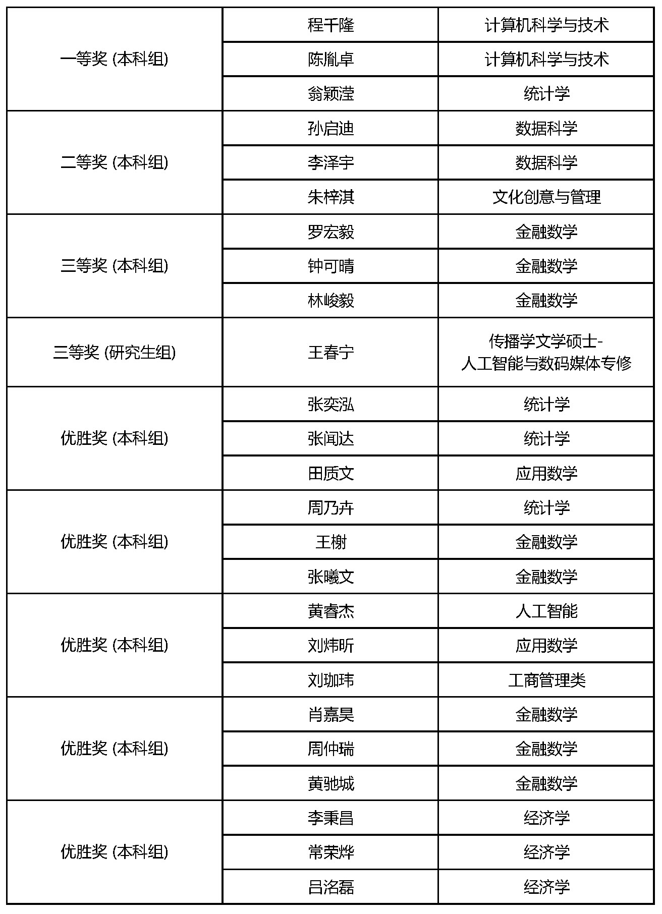 获奖名单