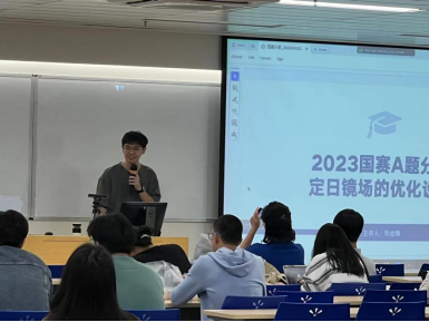 11月29日,2022级金融数学专业的刘金穗同学结合2023年国赛A题,为大家深入解析了定日镜场的优化问题策略。他详细介绍了队伍在比赛中的模型构建、代码模拟、论文写作等环节,并且分享了建模竞赛的心路历程。