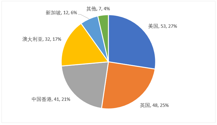 收到的193份offer中来自美国的offer数量最多(53,27%),其次是英国(48,25%),中国香港(41,21%)。