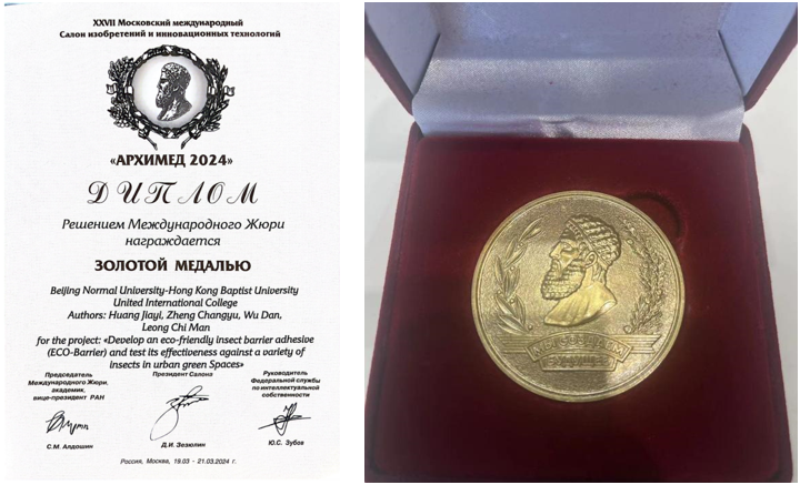 近日,由UIC理工科技学院三位本科生组成的研究小组发明的“新型防虫材料”在2024年第27届俄罗斯莫斯科“阿基米德”国际发明暨创新科技展中荣获金奖。