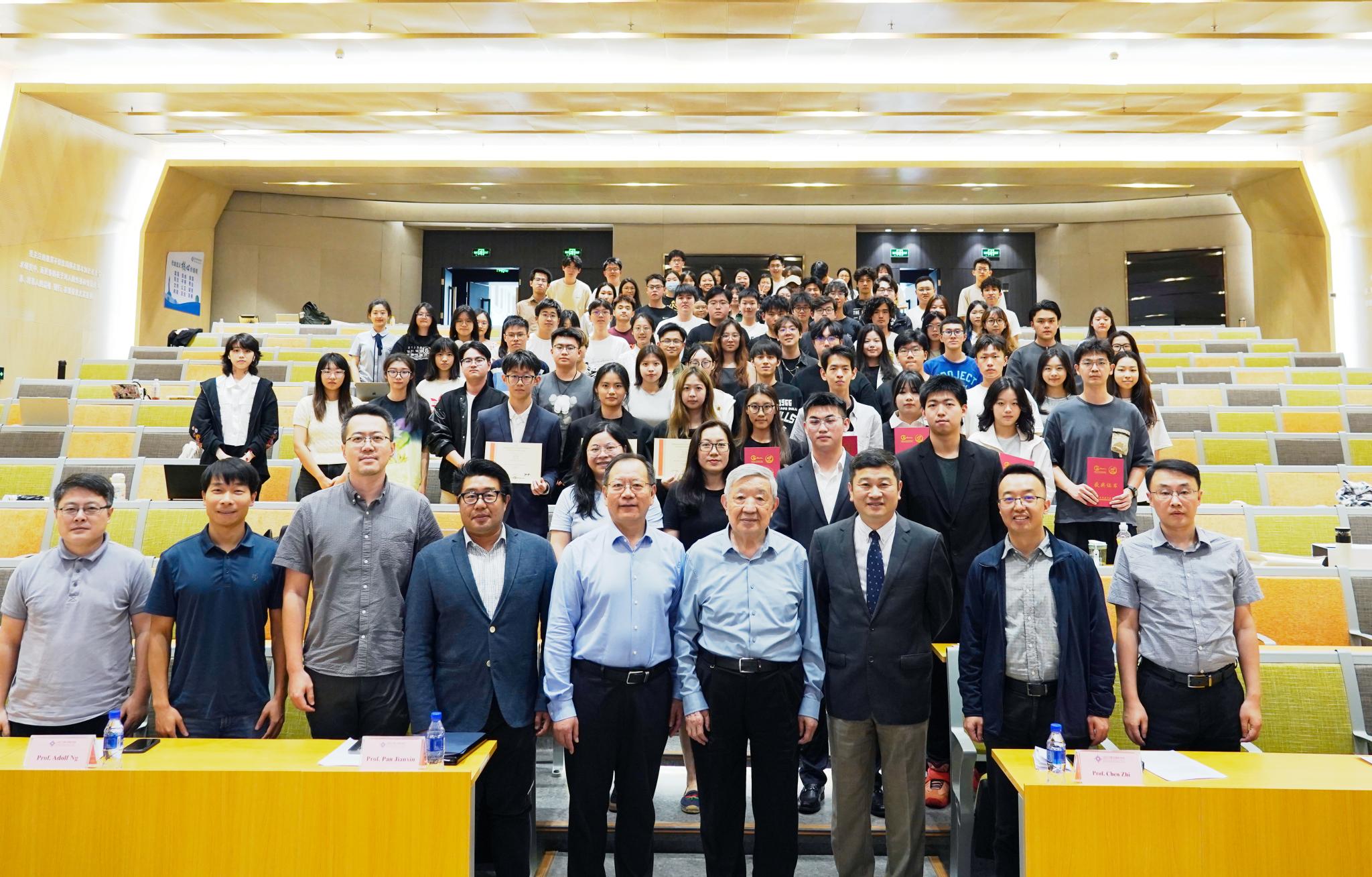 潘建新教授(右一)与吴盖宇教授(左一)为获美赛特等奖提名的同学颁奖