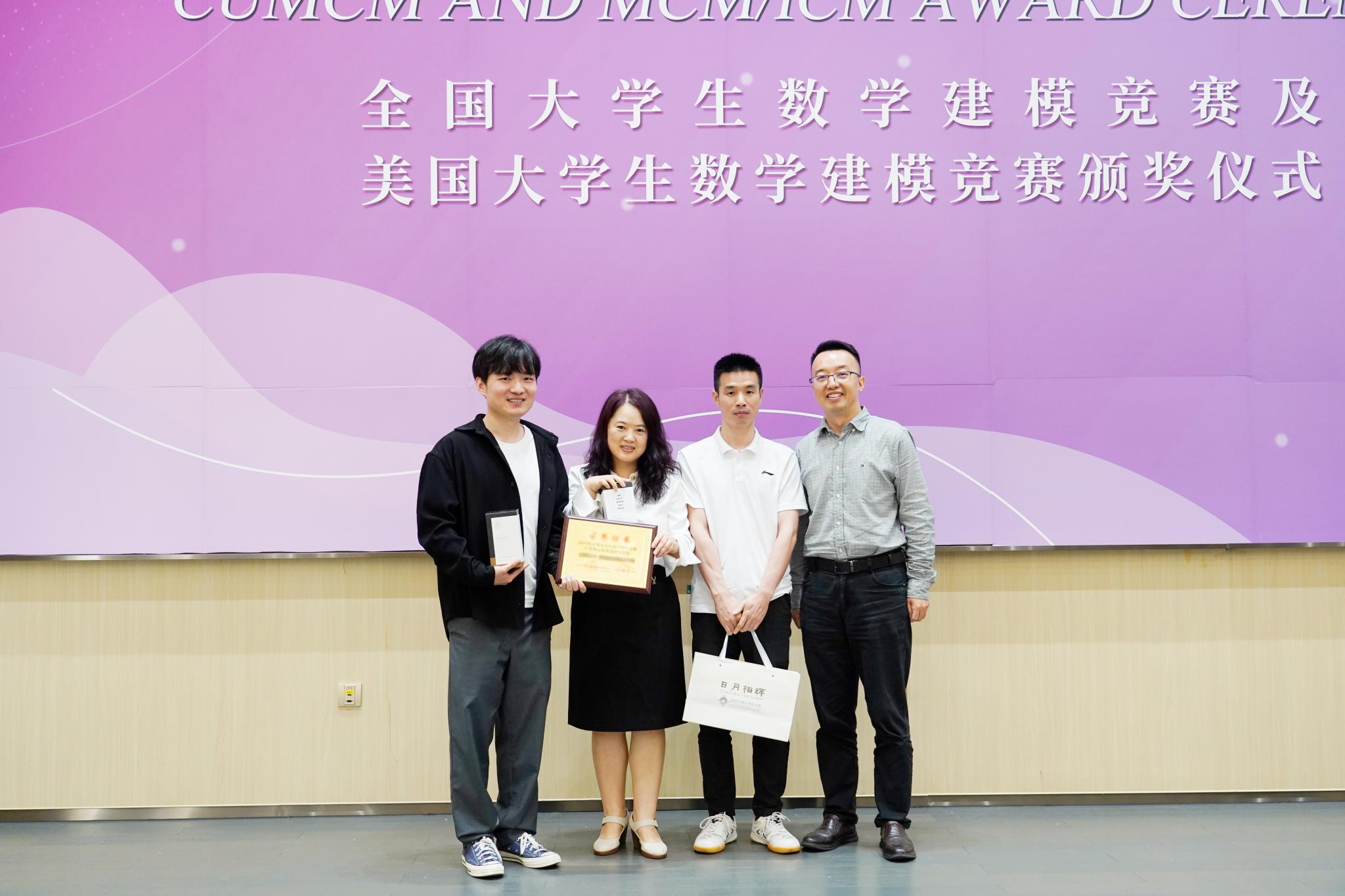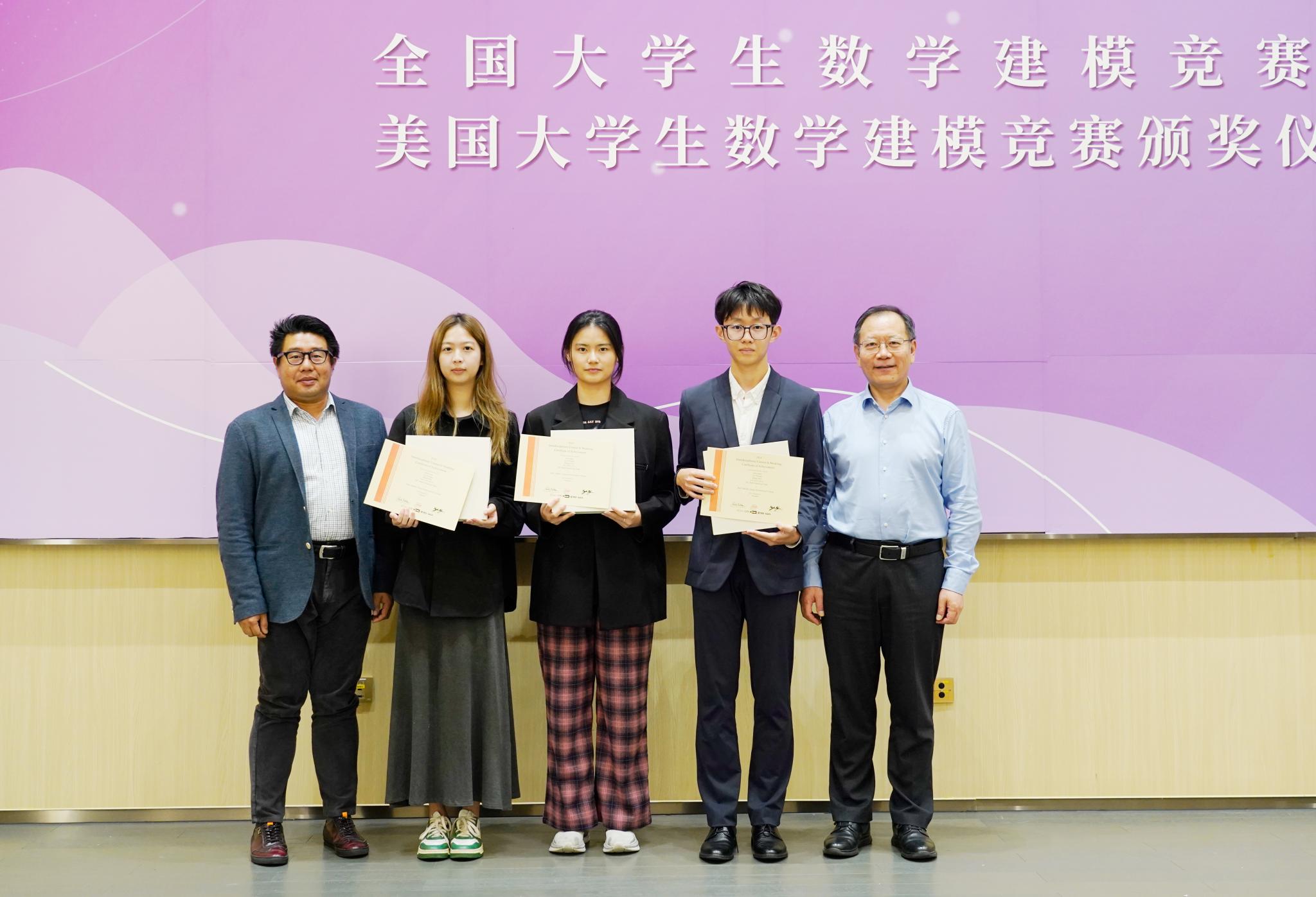 轩辕哲教授(右一)为美赛二等奖获奖同学颁奖