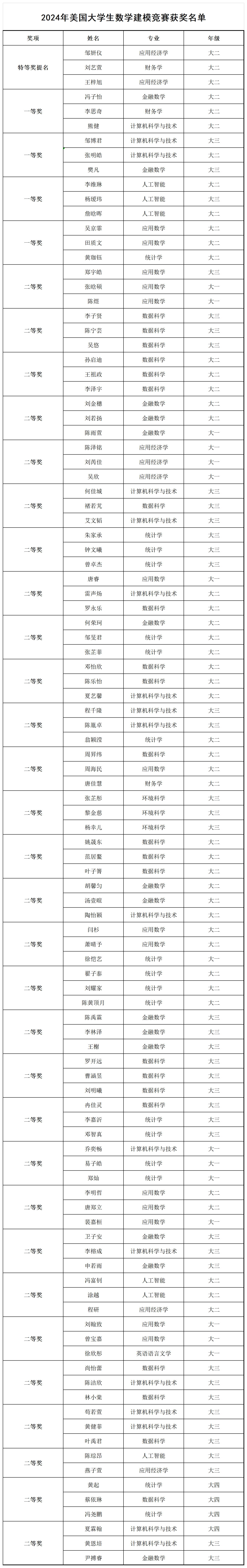 近日,2024年美国大学生数学建模竞赛(以下简称“美赛”)结果揭晓,北师港浸大(UIC)学子再创佳绩,收获1组特等奖提名(全球前2%)、4组一等奖和30组二等奖,奖项数量创历史新高。