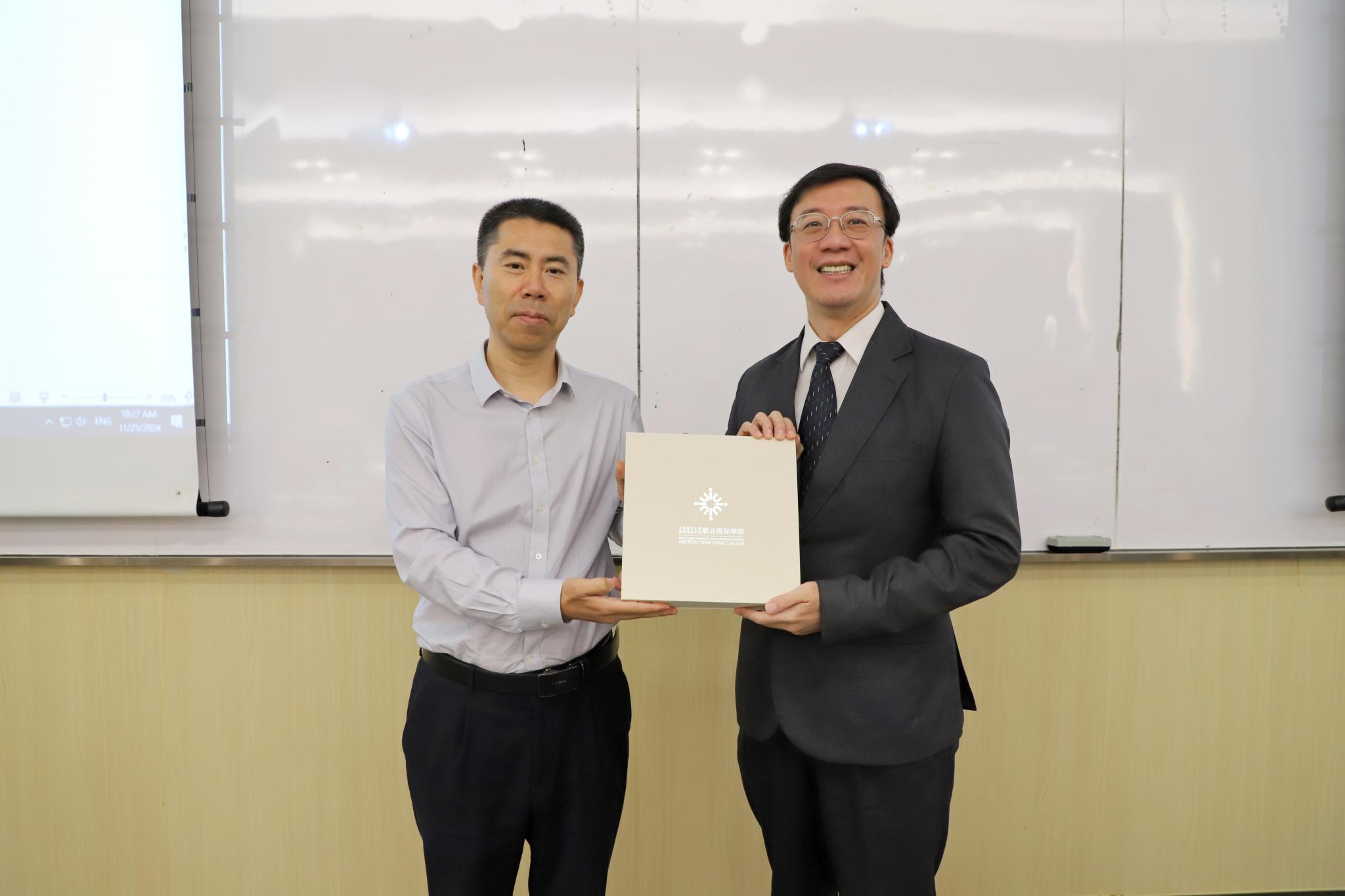 徐宝军教授向王惠民教授赠送UIC纪念品并合影