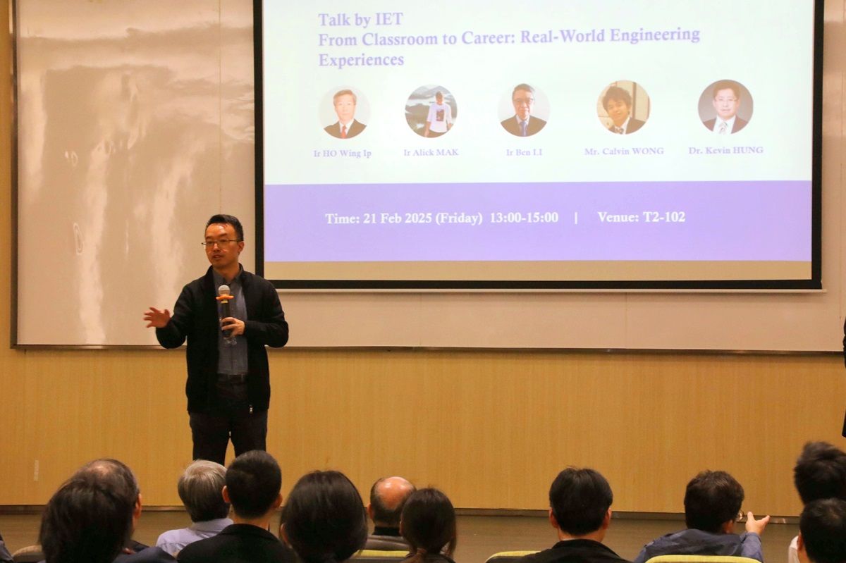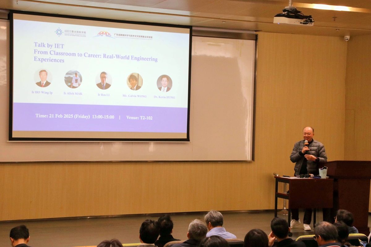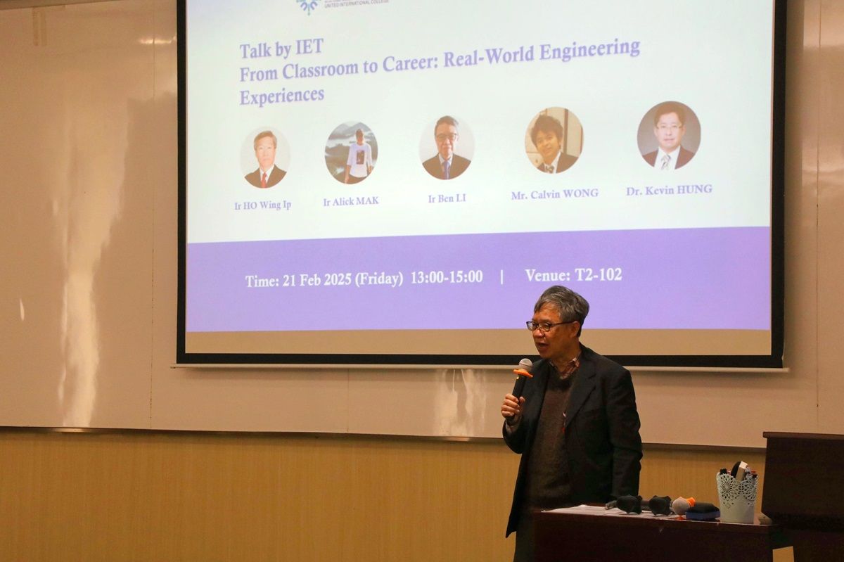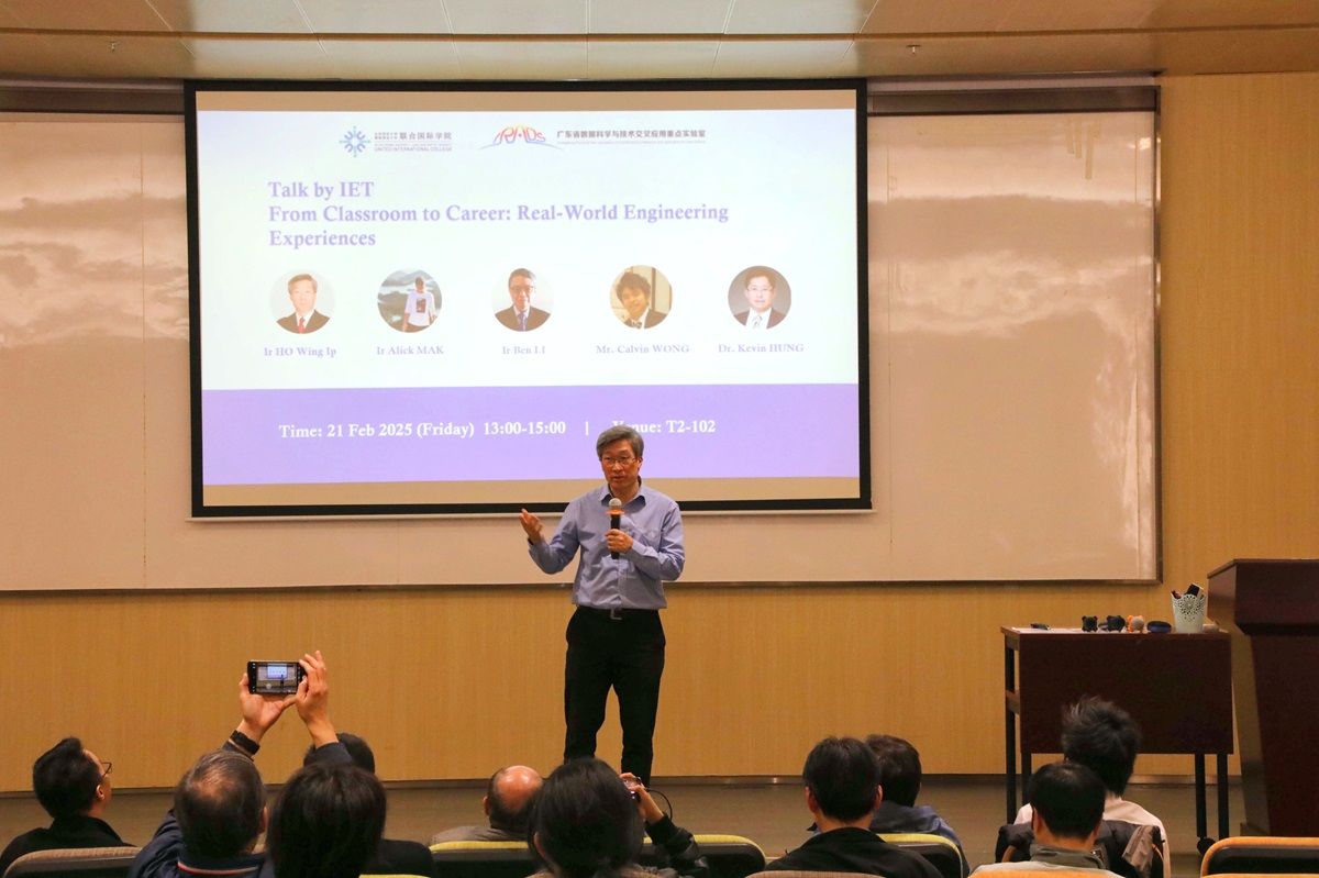 下午,代表团为UIC学生带来了一场题为“从课堂到职场:工程师实战经验分享”的职业发展讲座,讲座由Katharina YU博士主持。IET香港分会委员会委员Ben LI工程师首先介绍了IET、IET的职能、IET香港分会以及如何成为一名注册工程师。随后,五位来自不同领域的工程师轮流上台分享他们的职业发展经验和见解。