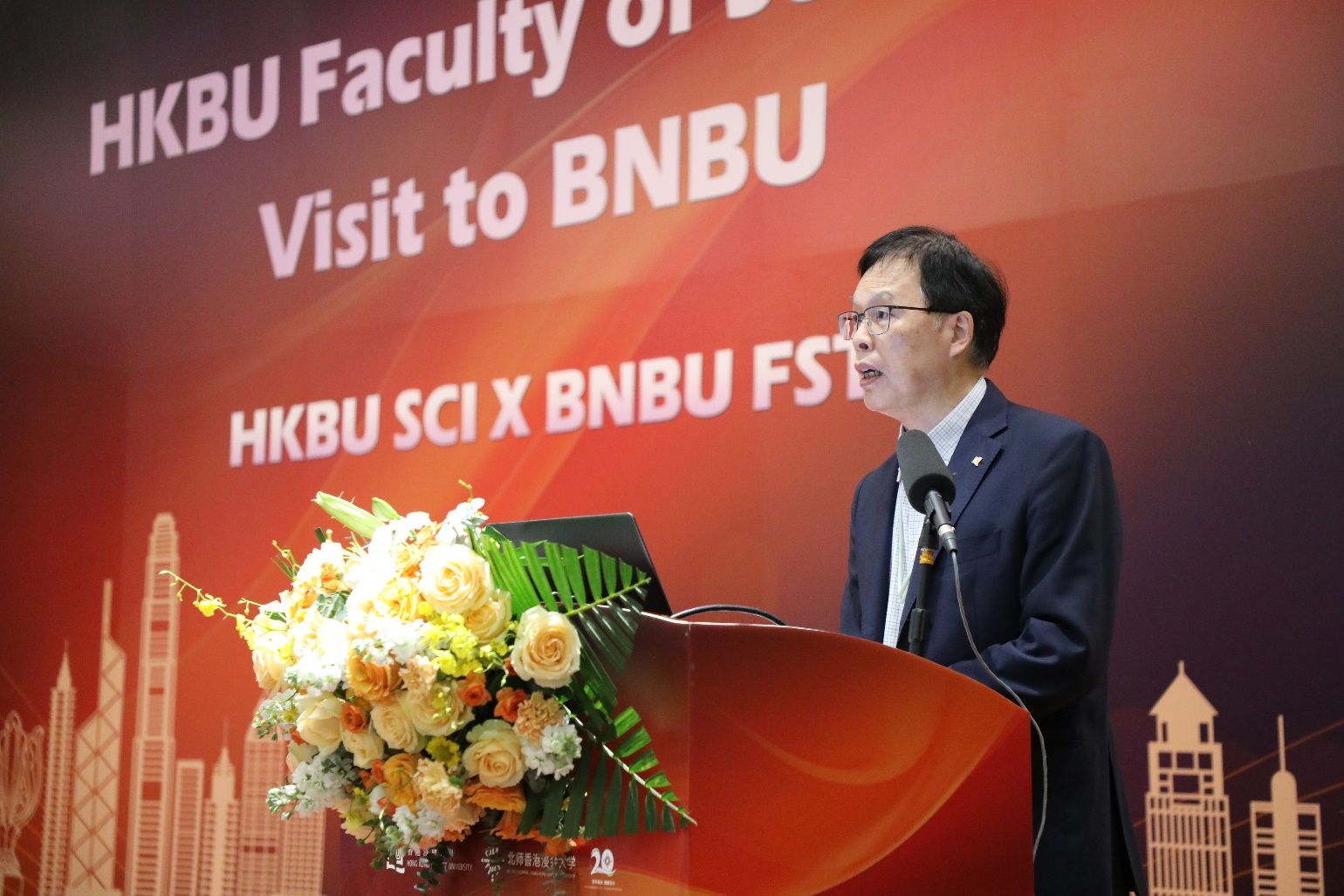 BNBU副校长(研究和拓展)潘建新教授对HKBU理学院同仁的到访表示热烈欢迎。潘教授表示,BNBU建校20年以来,理工科技学院取得了丰硕的成果,这离不开HKBU理学院长期以来的支持。 他特别提到,双方近年来在人才培养和科研合作方面取得显著成效,共同开设的授课型研究生课程运行良好,“3+1+X”项目首批学生也将于9月开启HKBU学习之旅。在首批通过审核的粤港高校“1+1+1”联合资助计划中,两院合作申报的项目约占比三分之二,充分彰显了双方在科研领域的深厚实力与紧密协作。潘教授期待未来能进一步深化双方在各领域的合作,实现协同发展。