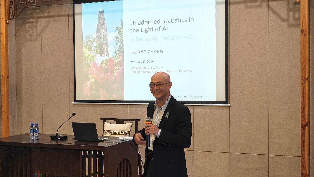 1月5日,理工科技学院明理大讲坛第二讲开讲!应北师港浸大副校长(研究和拓展)、广东省数据科学与技术交叉应用重点实验室主任、理工科技学院统计与数据科学系讲座教授潘建新邀请,耶鲁大学张和平教授作为此次开讲嘉宾到访我校,为理工科技学院师生带来题为“AI视角下的朴素统计学”的专题报告。