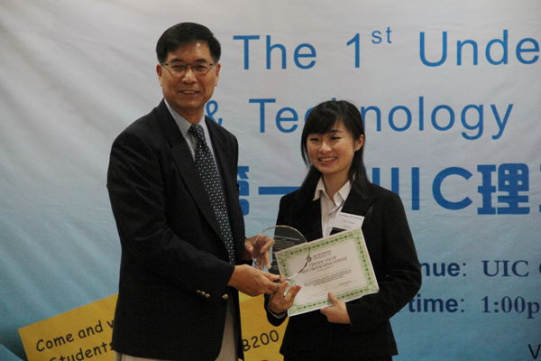 颁奖仪式结束后,来自食品科学与工程专业的杨斯敏教授在接受采访时说:"海报展在西方的国际学术会议上是很重要的,因为会议没有充足的时间让每一个人上讲台讲述自己的研究成果,所以就要求他们把成果展示在版面有限的海报上,通过表格、图片、文字及生动形象的讲解来吸引观众。这种形式有较好的互动性,双方可以通过交谈来增进对课题的理解。因为UIC要求同学们全程用英文讲解,所以也是对同学们的口语表达能力的一种锻炼。这次很多同学的课题都非常有趣,很吸引人。"