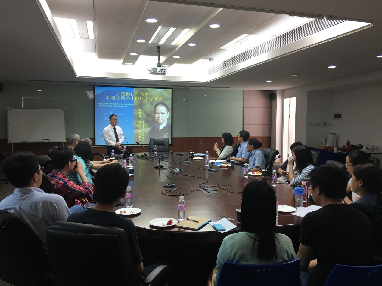 5月17日,广东省电信规划设计院大数据工程院院长李炯城应邀来到UIC,为UIC统计系教师带来了题为“大数据在社会民生和电子政务中的应用与机遇”的讲座。