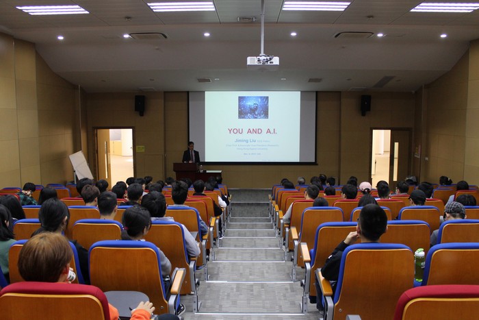 On 9 December, Chair Professor of Computer Science and Associate Vice President of Hong Kong Baptist University, Prof Liu Jiming, came to UIC to give a talk titled ‘You and A.I.’. The room was filled with students eager to hear from Prof Liu, as he is an expert in his field, and had a lot to teach the students about Artificial Intelligence (A.I.).