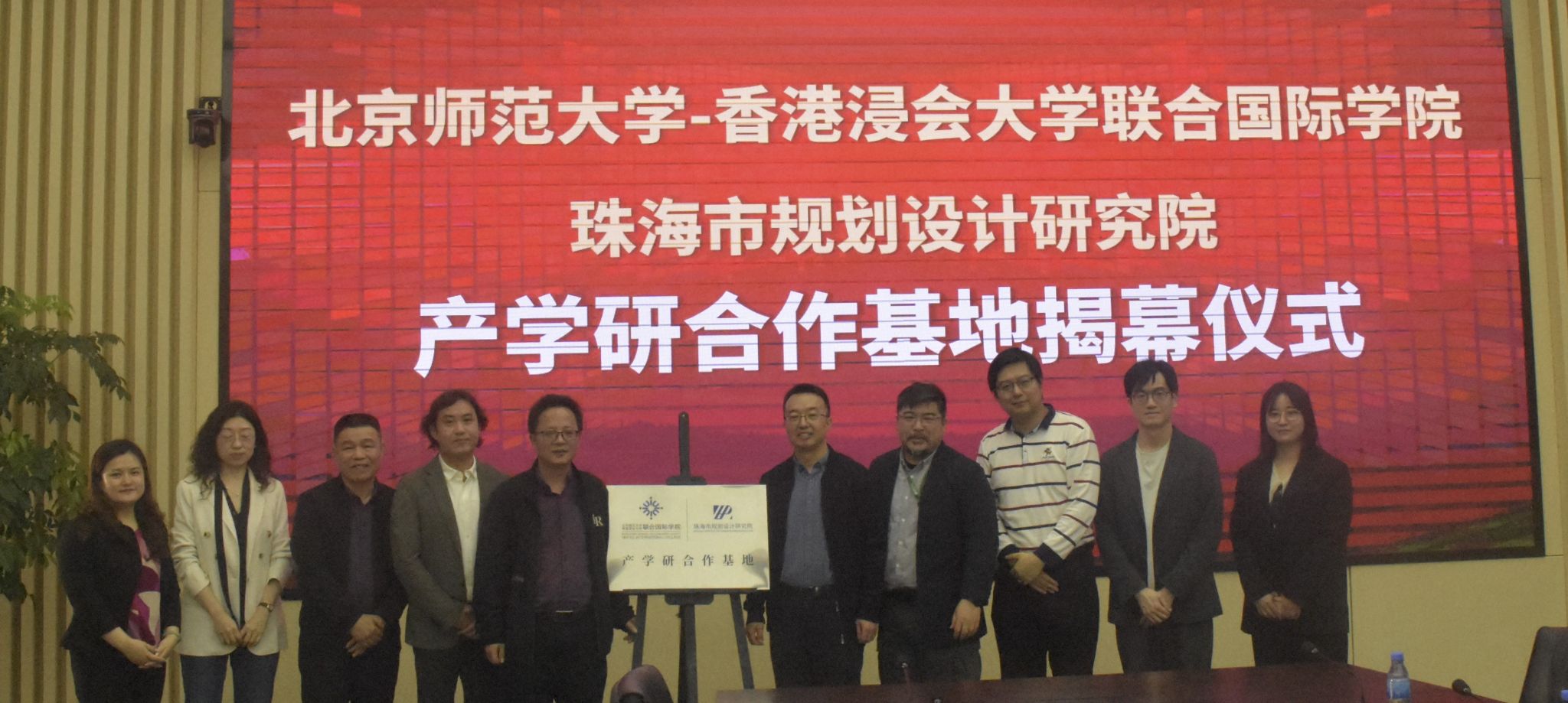 最后是产学研合作基地的揭幕仪式。这标志着北师港浸大与珠海市规划设计研究院在产学研合作方面迈出了坚实的一步,未来双方将在人才培养、科研合作、学术交流等领域继续开展深度合作。